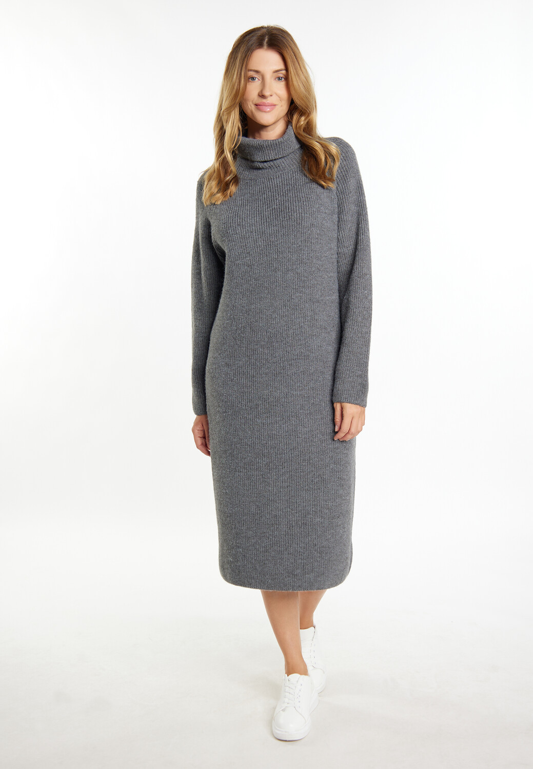Просто наденьте и чувствуйте себя хорошо – это трикотажное платье от usha WHITE LABEL облегчает выбор гардероба. Свободный крой с водолазкой и длинными рукавами подчеркивает ясность и элегантность в целом, а слегка объемная форма делает длинный свитер более свободным. В зависимости от случая это платье станет стильным и универсальным спутником как в офисе, так и на частном мероприятии. Конечно, вы также можете уютно устроиться дома на диване.