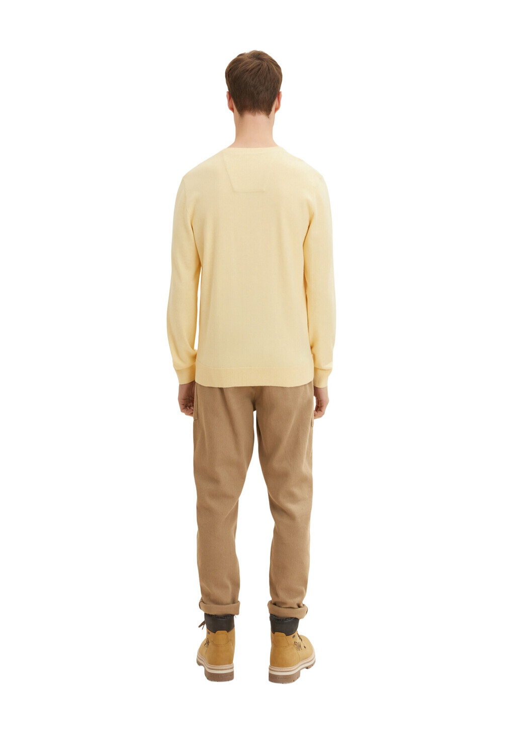 Свитер плоской вязки из мягкого органического хлопка, с длинными рукавами и V-образным вырезом.