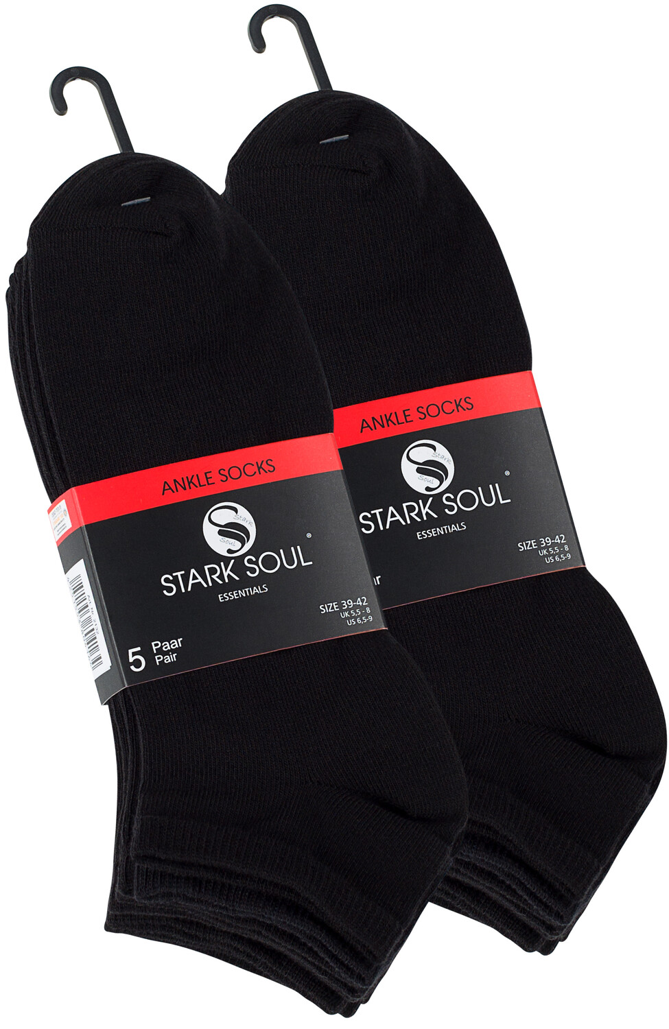 Модные цветные носки-кроссовки STARK SOUL® для женщин и мужчин доступны в разных цветах и размерах. Короткие носки подходят на каждый день, имеют короткую голенище и низкий крой. Это означает, что носки практически незаметны в обуви. Высокое содержание хлопка обеспечивает оптимальный комфорт при ношении без потоотделения благодаря своим климаторегулирующим свойствам. Носки-кроссовки особенно мягкие, приятные для кожи, дышащие и устойчивые благодаря тончайшему рисунку стежков. Независимо от стиля и повода, вы получите у нас идеальные носки-кроссовки. Белый, черный или цветной — носите на ногах то, что вам нравится, и когда вам это нравится. Материал для меланжевых цветов: 68 % хлопок, 27 % полиэстер, 5 % эластан. Однотонные цвета: 80 % хлопок, 15 % полиамид, 5 % эластан.