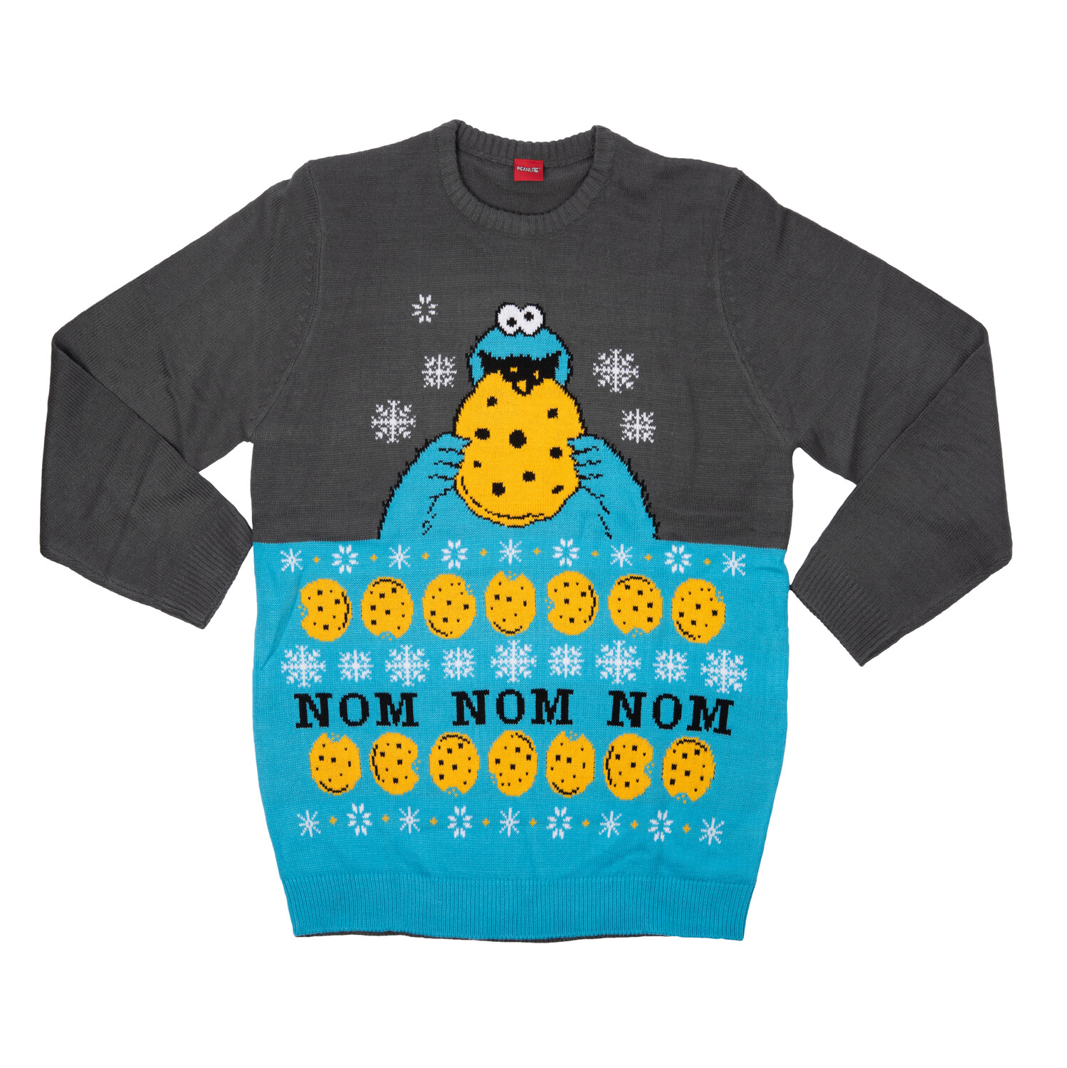 Рождественский свитер унисекс «Улица Сезам» — зимний вязаный пуловер Cookie Monster, свитер Ugly Sweater для мужчин и женщин, серо-синий
