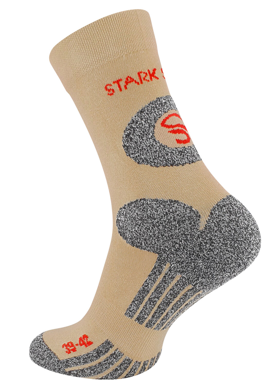 Будь то походы, треккинг или бег на большие расстояния, носки для активного отдыха STARK SOUL станут поистине идеальными и удобными спутниками на твердых поверхностях. Усиления на пятке, носке, подошве стопы, лодыжке и ахилловом сухожилии, а также высокое качество изготовления и качества предотвращают образование волдырей и точек давления, оказывают амортизирующее и защитное действие. Усиленная махровая подошва обеспечивает мягкий шаг и хорошую амортизацию. Стелька имеет анатомическую форму и адаптирована под правую и левую ногу. Кроме того, маркировка справа/слева обеспечивает дополнительный комфорт. Встроенная система канальной вентиляции кондиционирует подошву стопы как зимой, так и летом. Материал: 58% хлопок | 20% полиамид | 17% Полиэстер | 5 % эластан