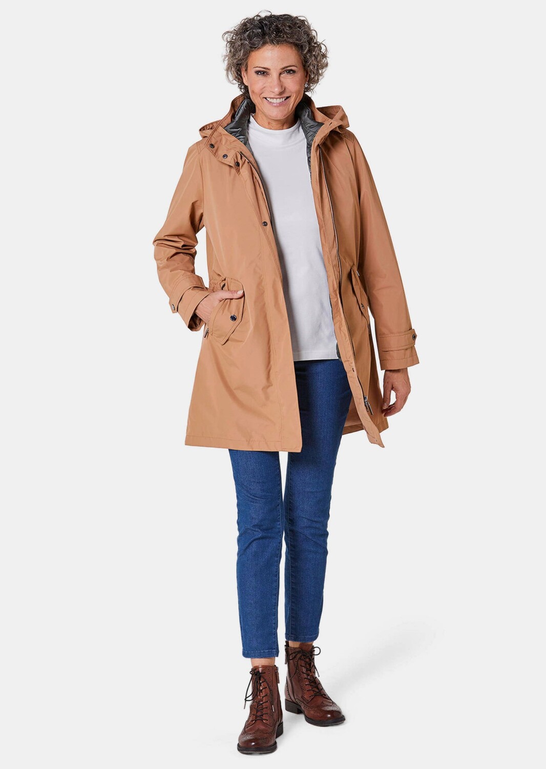 Всесезонная куртка, которая подойдет для любой погоды. Ведь сочетание куртки и съемного стеганого жилета позволяет носить красивую модель 3 в 1 по-разному. Либо застегните молнию на куртке с капюшоном и жилете вместе для оптимальной защиты от непогоды в холодные дни. Или можно носить куртку и жилетку с капюшоном отдельно – в зависимости от погоды. Благодаря высокому воротнику-стойке, съемному капюшону и внутренней кулиске куртка идеально подходит как ветровка. Двойные карманы тщательно продуманы для сумок с очень глубокими карманами. Застежка-молния закрыта планкой на кнопках для защиты от ветра. Они элегантно украшены логотипом GOLDNER. С высококачественной окантовкой и лентами в тон. Экологическая, водо- и грязеотталкивающая пропитка Bionic Finish ECO® с формулой, не содержащей фтора, дольше сохраняет цвета и ткани как новые, позволяет материалу быстрее высыхать и превращает уход в детскую игру. Качество также дышащее, ветроотталкивающее, прочное и оснащено защитой от ультрафиолета. Длина куртки примерно 90 см. 46, размер около 86 см. 23. Длина жилета, размер около 66 см. 46, размер около 62 см. 23.