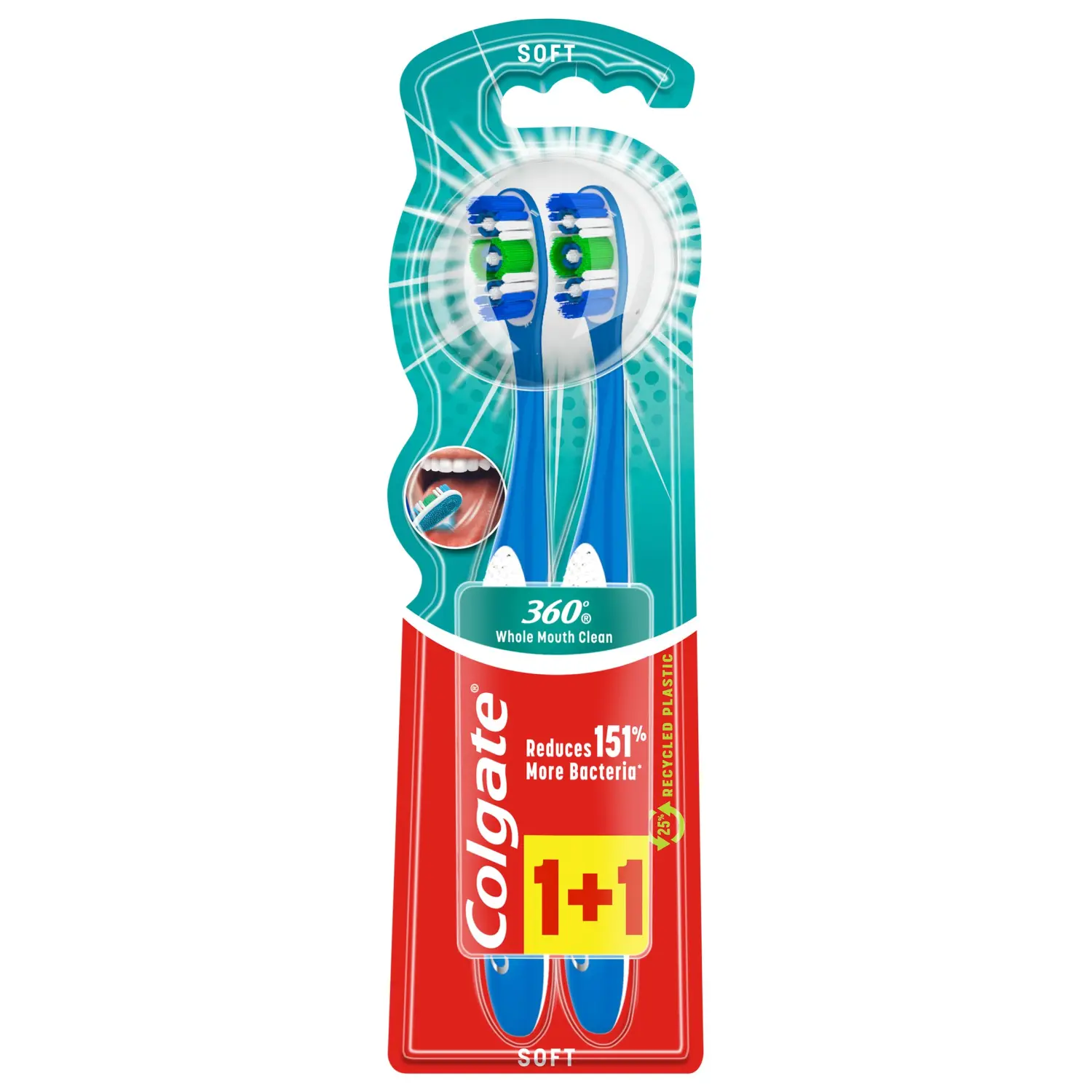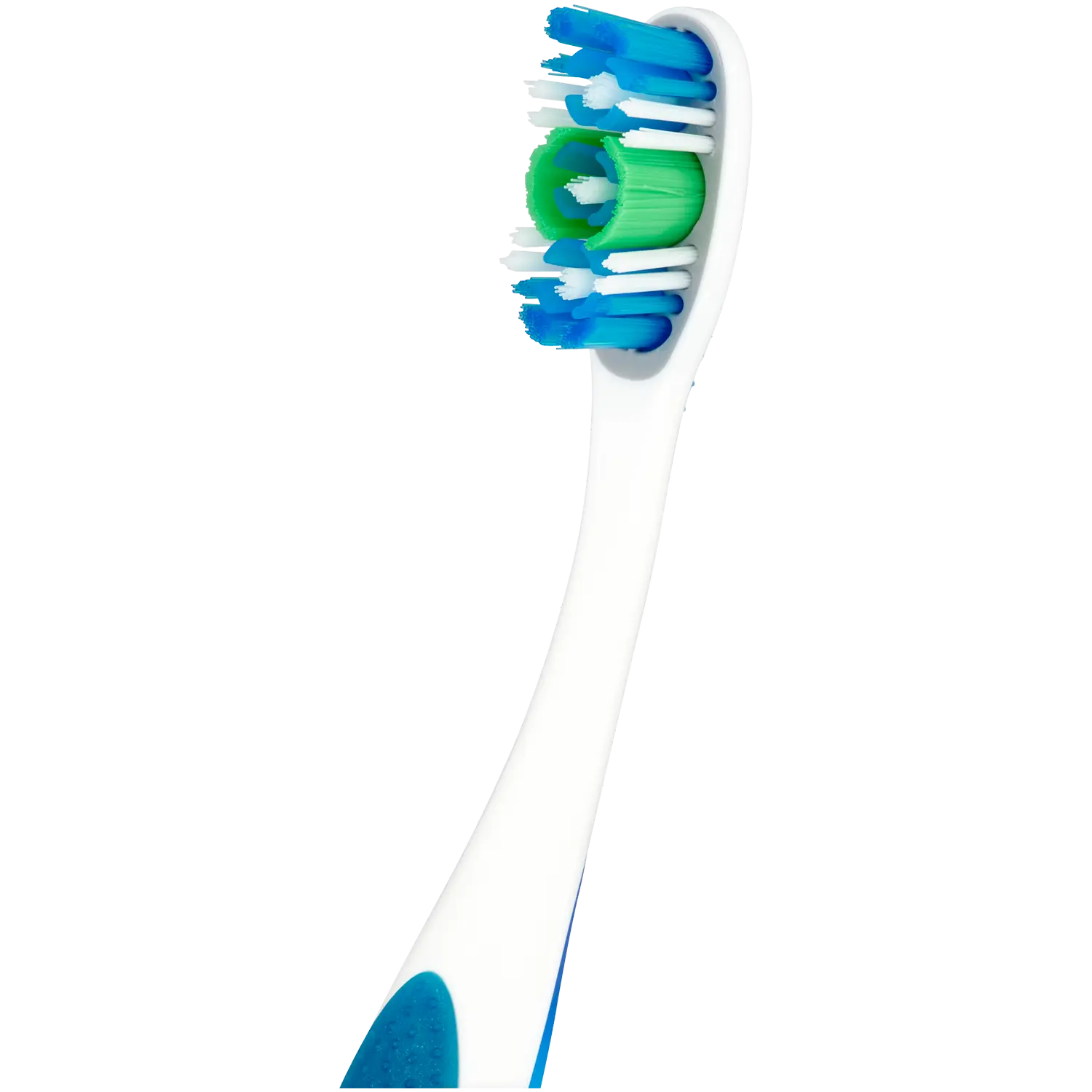Зубная щетка с разной длиной щетины и ластиками для полировки зубов. Удаляет бактерии из 4-х зон - зубов, щек, языка и десен.