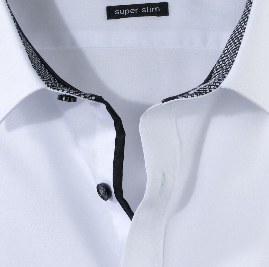 Инновационная деловая рубашка OLYMP No. Six Super Slim с внешним материалом белого цвета и новыми пропорциями оптимально демонстрирует тренированную упаковку из шести кубиков. Строго скроенная рубашка впечатляет своим облегающим кроем и поэтому является идеальной основой для гардероба спортивных мужчин. Элегантный воротник Urban Kent, закругленные комбинированные манжеты и узкая планка на пуговицах подчеркивают тонкий силуэт. Однотонная отделка на внутренней полосе воротника и внутренних манжетах дополняет общую картину. Планка с пуговицами по окантовке также свидетельствует о модном опыте владельца.