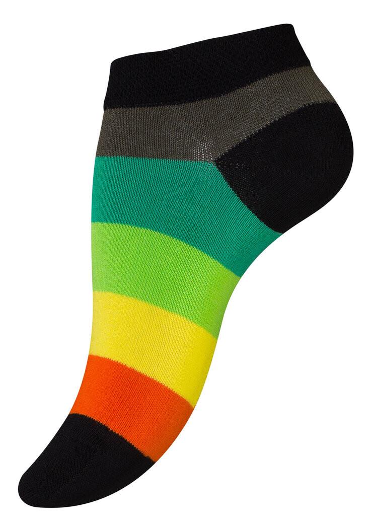 Эти носки с ярким дизайном в полоску выглядят освежающе красочно. Качество эластичности, высокое содержание хлопка, удобные и не разрезающие манжеты также обеспечивают оптимальную посадку и приятный комфорт при ношении. Прочная смесь трех волокон удобна, эластична и приятна для кожи. Высокое содержание хлопка делает кроссовки впитывающими влагу и обеспечивает приятный микроклимат для ног. Материал: 80 % хлопок, 15 % полиамид, 5 % эластан