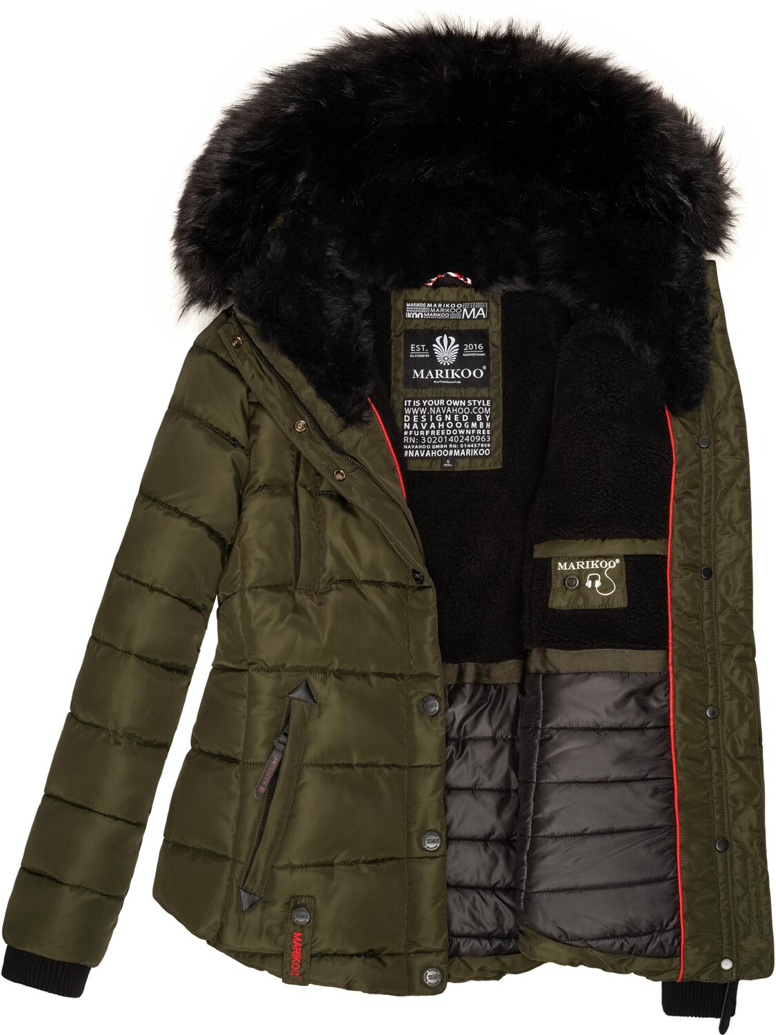 ВИД: Высококачественная зимняя стеганая куртка с большим съемным капюшоном из искусственного меха и приятной мягкой внутренней подкладкой - идеальный компаньон в холодное время года (осень и зима). МАТЕРИАЛ: Нескользящий, но при этом мягкий и водоотталкивающий внешний материал, внутренняя подкладка мягко простегана внизу и вверху, а капюшон выполнен из уютного теплого флиса. Посадка: зимняя куртка имеет слегка приталенный крой и впечатляет идеальной длиной до бедер. сохраняет тепло