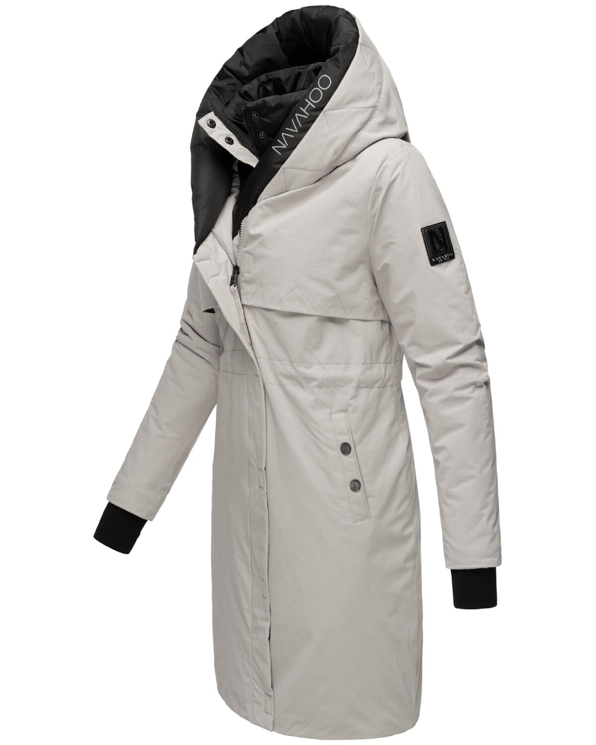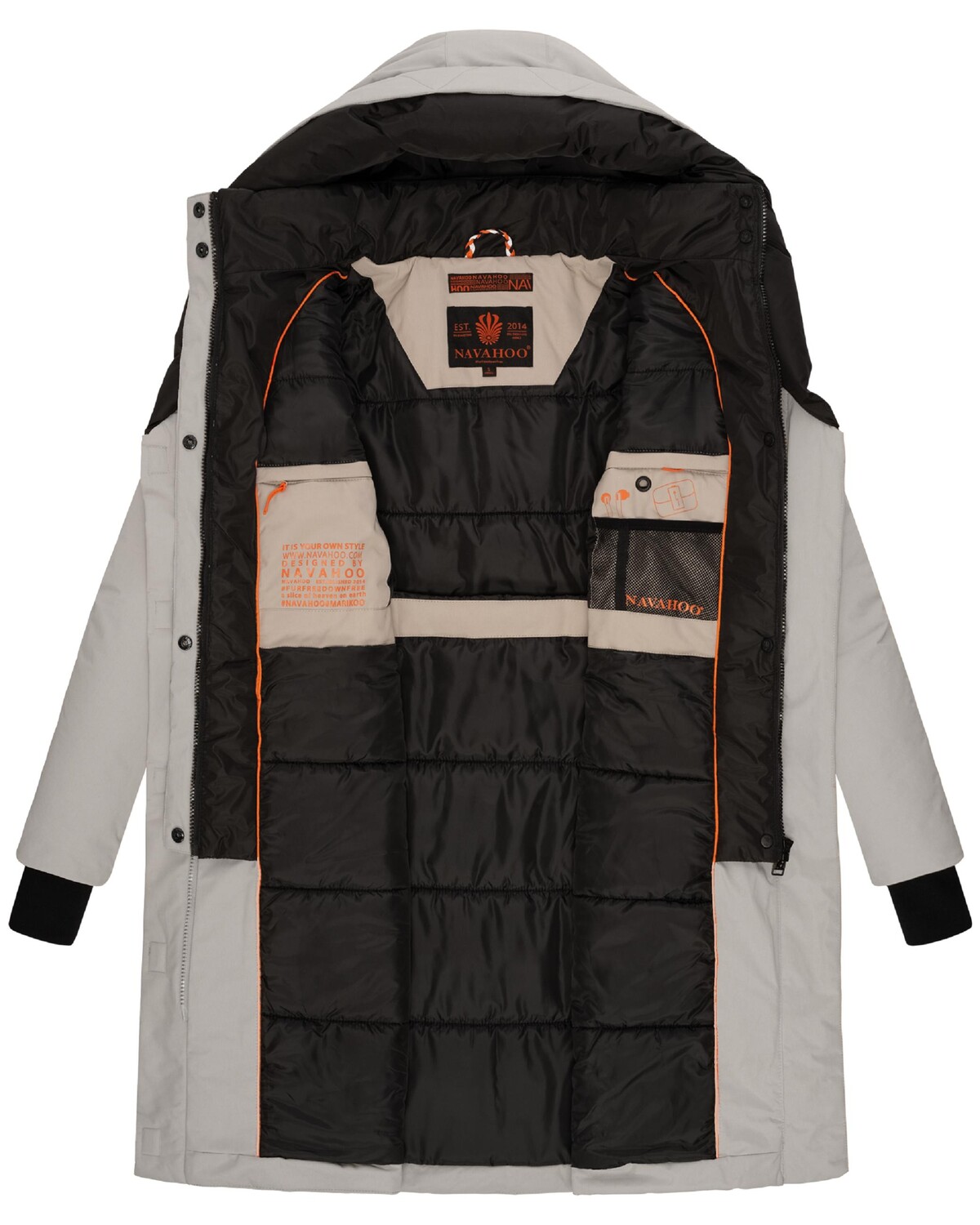 ВИД: Стильное женское зимнее пальто с контрастными цветными элементами, высоким воротником и большим капюшоном на подкладке от бренда Navahoo – идеальный спутник в холодные дни осени и зимы. МАТЕРИАЛ: Нескользящий, водо- и ветрозащитный внешний материал, бархатистая мерцающая внутренняя подкладка! парка и мягкие ребристые манжеты на концах рукавов обеспечивают идеальную защиту от ветра и непогоды.