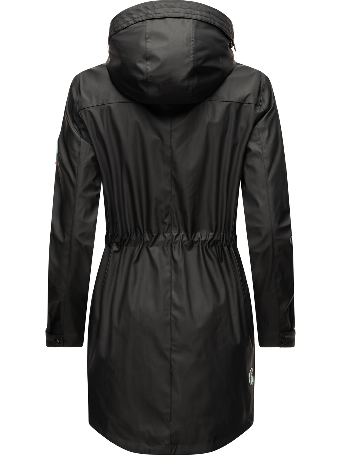 ФОРМА: Эта парка от дождя имеет индивидуальный крой, очень длинную по низу, красивый силуэт благодаря кулиске на талии. ДЕТАЛИ: Куртка для отдыха на открытом воздухе с практичными боковыми карманами с клапанами, капюшон можно снять на молнии.