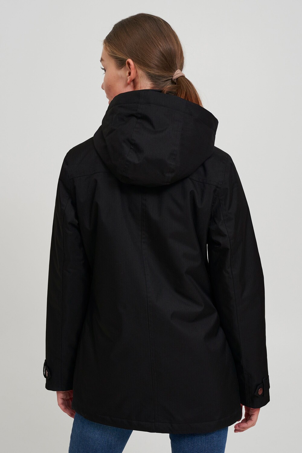 ДЕТАЛИ И ОСОБЕННОСТИ: Набивка средней плотности, высокий воротник-стойка, съемный капюшон (на молнии), два боковых кармана (на кнопке), один из которых совмещен с встроенным сверху карманом (на молнии), ребристые и эластичные манжеты, застежка-молния с планкой с пуговицами, нашивка с логотипом из искусственной кожи на рукаве и по переднему краю, хлястики с кнопками на концах рукавов, внутренняя подкладка с стеганым узором в тон.