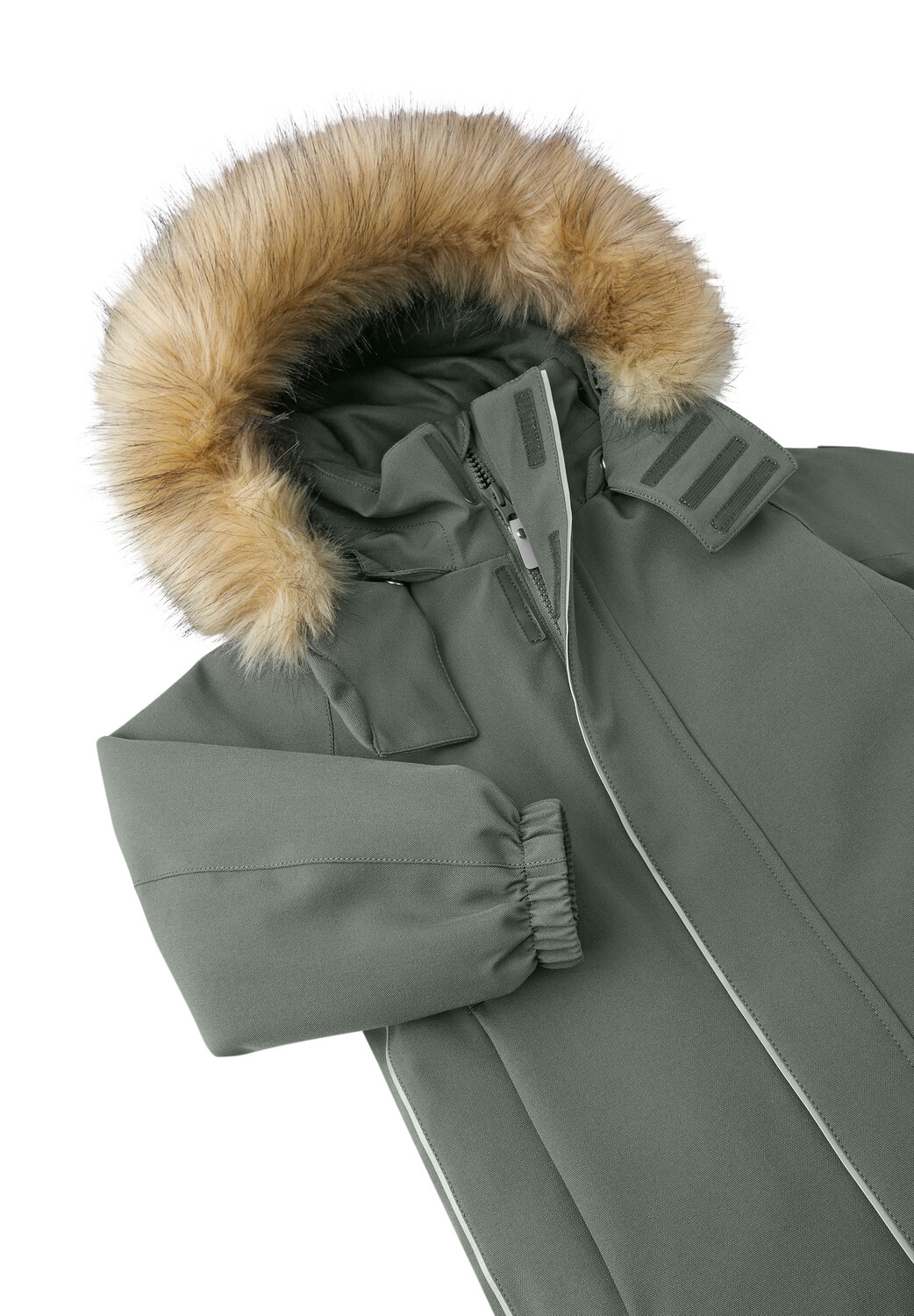 Этот прочный зимний комбинезон Reimatec надежно водонепроницаем благодаря герметичным швам. Ветрозащитный и дышащий материал сохраняет тепло и сухость детей, не заставляя их потеть. Приятная гладкая подкладка из полиэстера и прочные усиления по краям. Для индивидуальной посадки зимний комбинезон прямого кроя можно регулировать по талии, а также по манжетам на руках и ногах. Съемный и регулируемый капюшон не только защищает от холодного ветра, но и обеспечивает дополнительную безопасность во время игры: благодаря кнопкам он быстро и надежно снимается, если где-то случайно зацепится. Он также имеет особенно мягкую съемную отделку из искусственного меха. Материал грязеотталкивающий, его можно сушить в стиральной машине. Светоотражающие детали дополняют крутой дизайн.