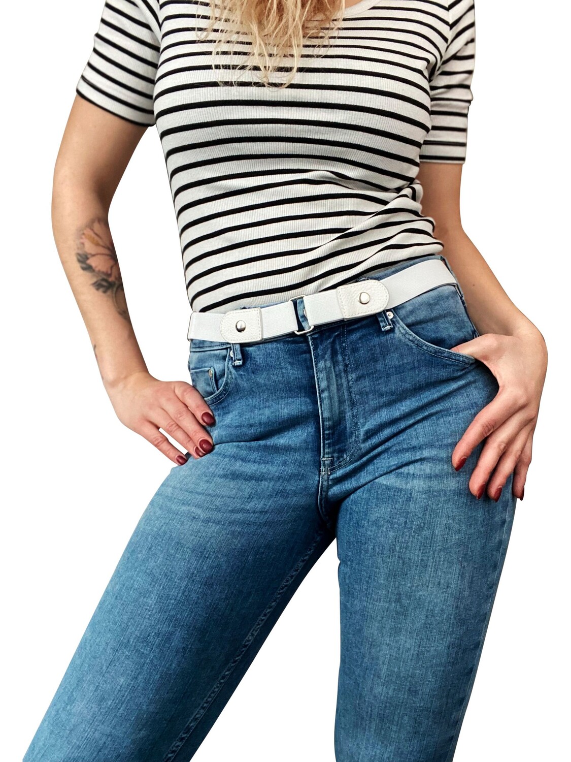 Суперпрактичный невидимый эластичный ремень без пряжки. Это оптимально адаптируется к любой форме тела. Больше никаких неудобных пряжек, которые некрасиво смотрятся на вашей футболке! Будь то женщина, мужчина или ребенок – ремень можно легко регулировать по размеру и использовать. Либо ремень прикрепляется к передним петлям брюк и таким образом обеспечивает удобную посадку, либо ремень используется с прилагаемым кольцом!