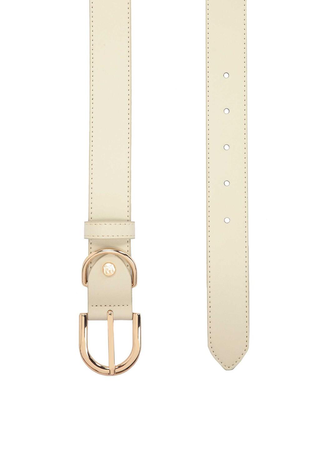 Бежевый женский ремень из качественной зерненой кожи – модный и простой аксессуар, который прекрасно сочетается с элегантными брюками или платьями. Универсальные цвета делают его вечным аксессуаром, который никогда не выйдет из моды. Золотая пряжка и металлическая петля образуют гармоничное целое и привлекают внимание. Представленная модель - оригинальный аксессуар, подчеркивающий индивидуальность и оригинальность любого наряда.