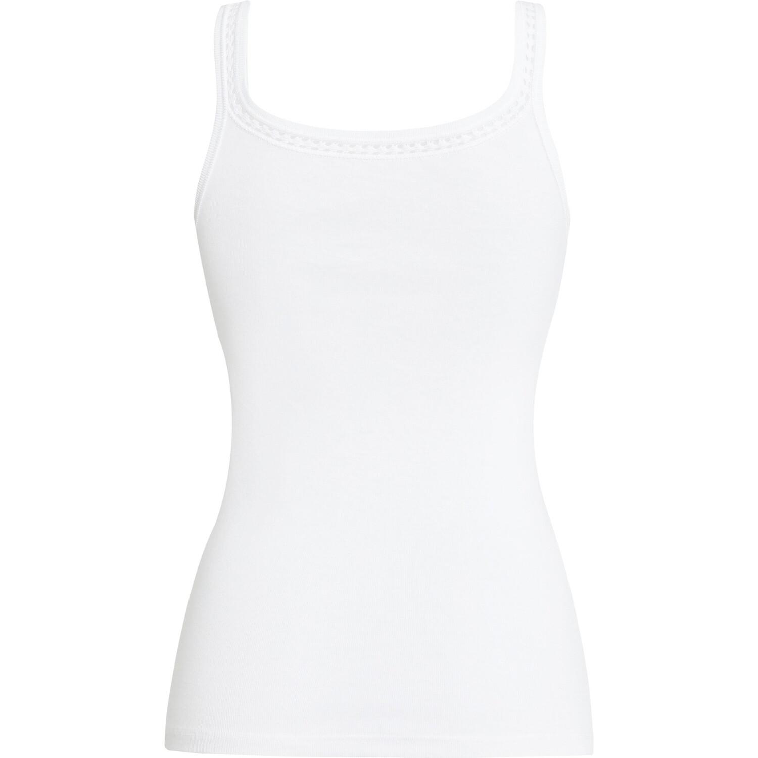 Женская майка Conta в мелкую резинку, в упаковке 2 шт. Удлиненное нижнее белье не громоздкое и идеально прилегает к телу благодаря технологии эластичного вязания. С декоративной кружевной отстрочкой по вырезу. Сработало без раздражающих боковых швов. Это качество гарантирует оптимальный комфорт при ношении, отличается очень хорошей посадкой и стабильностью размеров. Тончайшая хлопчатобумажная пряжа отличного качества обеспечивает приятное ощущение на коже.