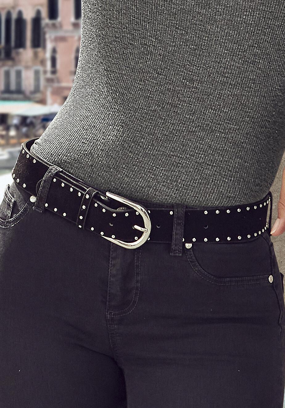 Ремень с заклепками от LASCANA. Изготовлен из искусственной замши. Ширина: 4 см.