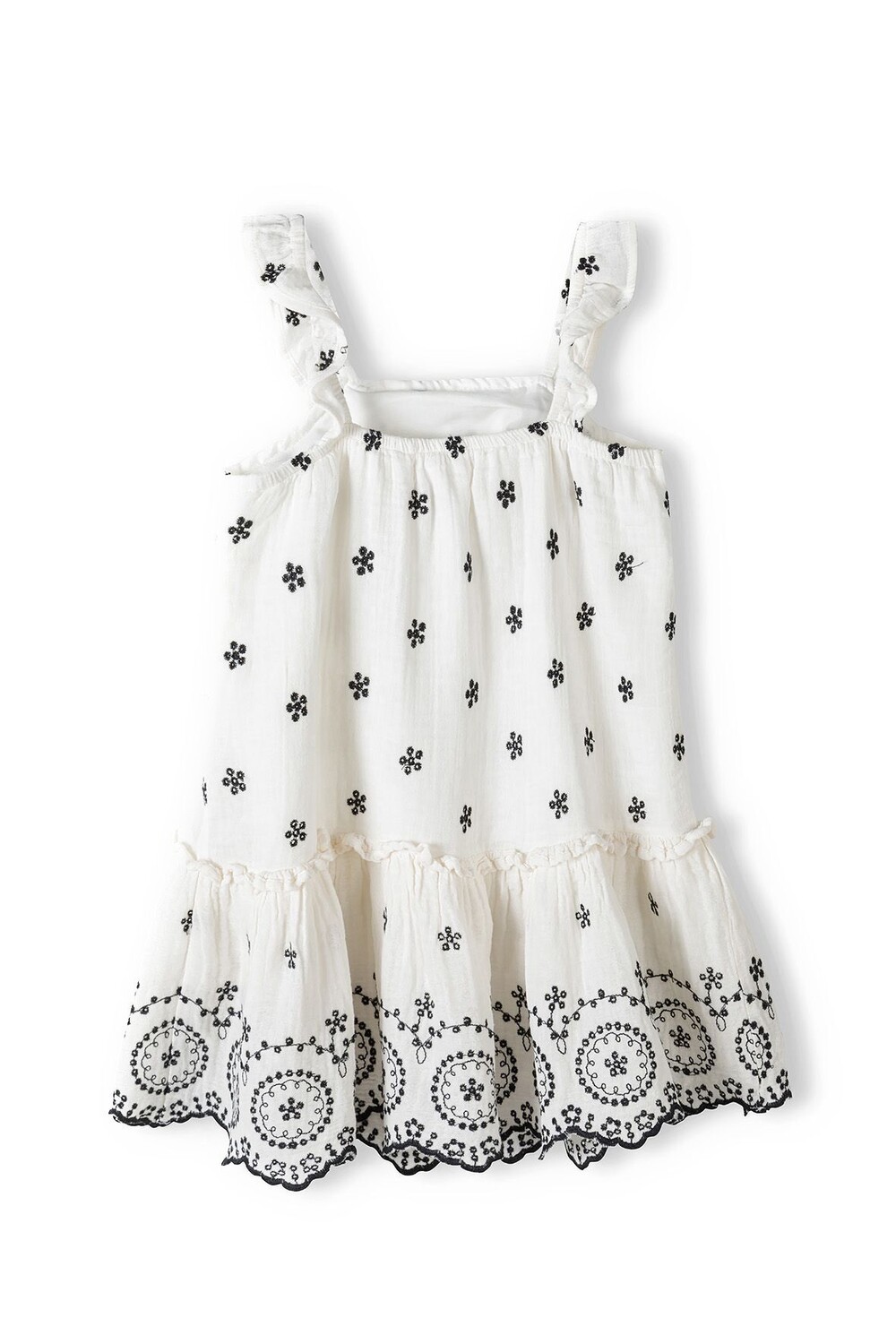 Удобное и милое платье с коротким рукавом, идеальное для лета. Ткань мягкая и удобная. Платье дает ребенку большую свободу движений. Доступно для девочек от 12 месяцев до 8 лет.