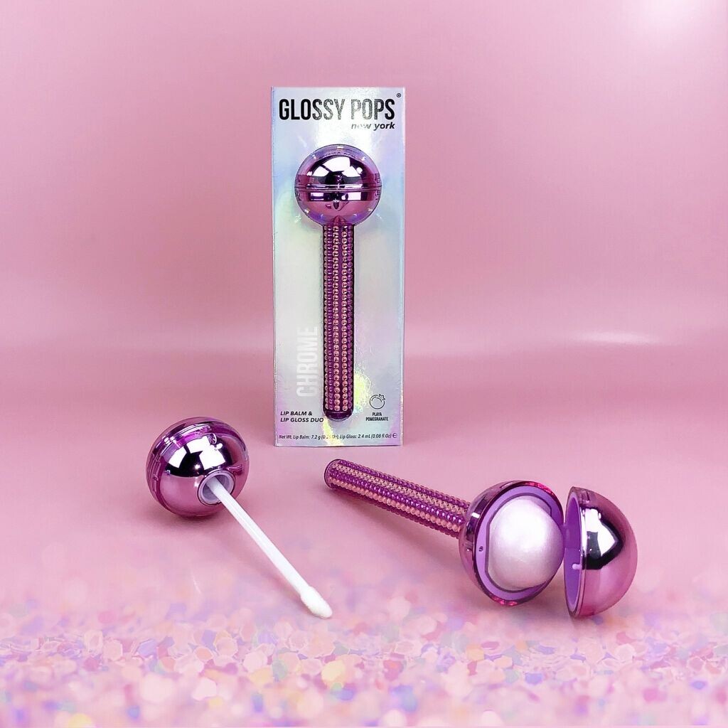 Откройте Metallic Glossy Top Pop и получите фиолетовый голографический бальзам для губ с ароматом граната. Отвинтите украшенную драгоценными камнями ручку, чтобы получить сладкий прозрачный блеск для губ.