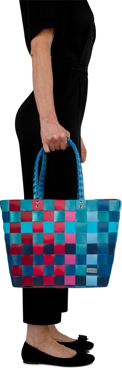 Легкая разноцветная плетеная пластиковая корзина идеально подходит в качестве корзины для покупок или модной пляжной сумки в отпуске. В частности, это связано с прочной пластиковой сеткой, поскольку используемые полиэтиленовые ремни прочны, водоотталкивающи и просты в уходе. Просто протрите влажной тряпкой или поместите прямо под душ, и ваша любимая вещь будет чистой! Благодаря гибкой конструкции корзину можно наполнять как сумку для переноски.