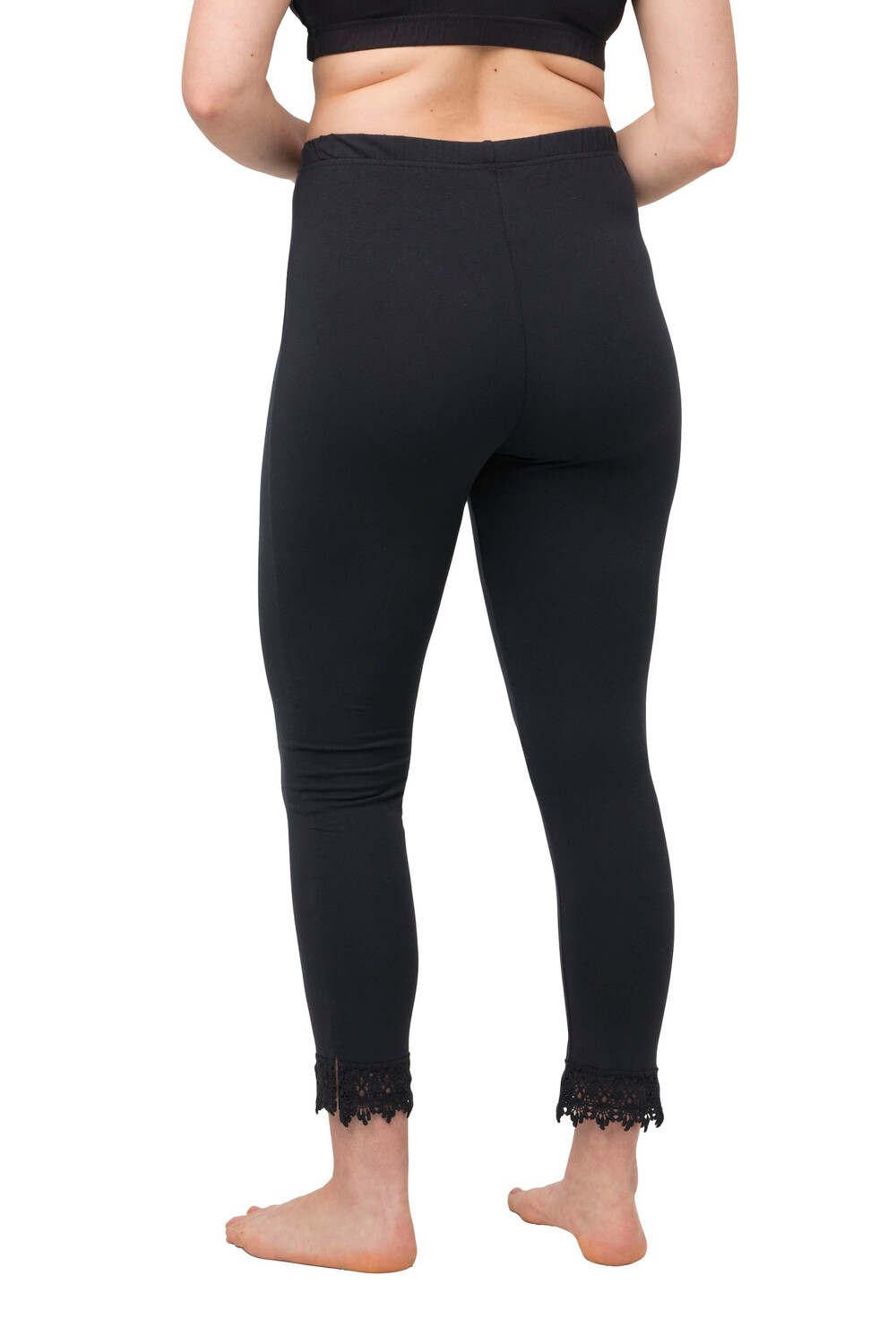 Леггинсы 7/8 из натурального хлопка с эластичным поясом. Кружево из органического хлопка и разрез по краю. Органический; сертифицировано лицензией ECOCERT Greenlife № 152026.