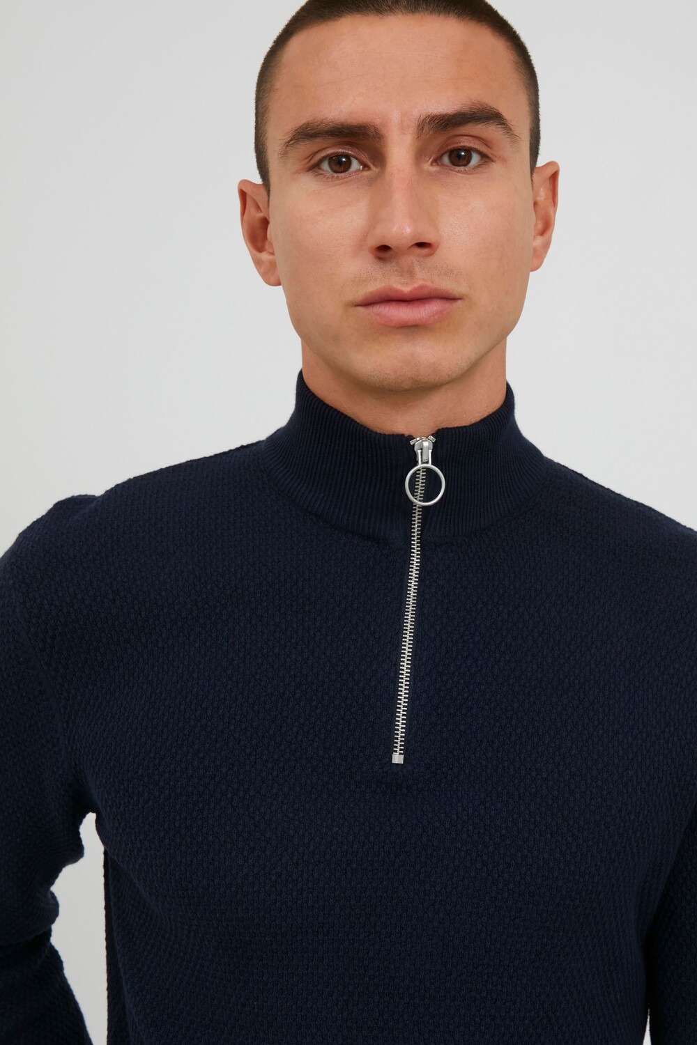 ДЕТАЛИ И ОСОБЕННОСТИ: Рубашка тонкой вязки, ребристый воротник с застежкой-молнией и бегунком для молнии, приятный мягкий материал с трикотажным узором, прямой низ, широкие и эластичные манжеты в рубчик по краям и краю рукавов, петля для этикетки в левом боковом шве, высококачественный хлопковый материал.