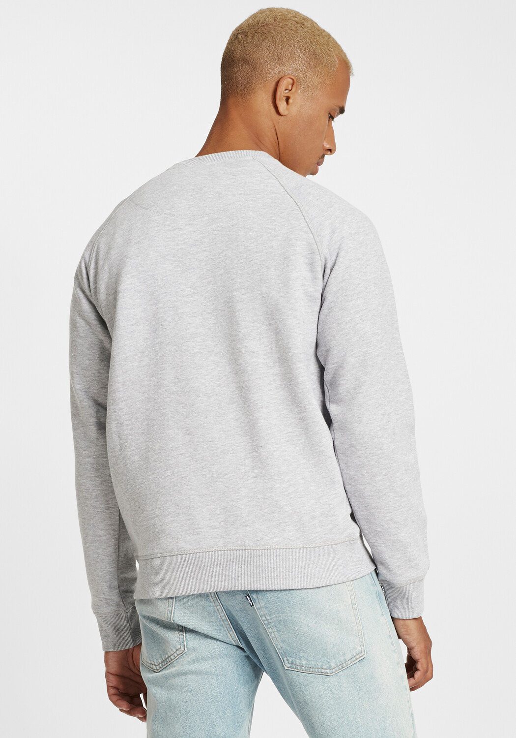 ДЕТАЛИ И ОСОБЕННОСТИ: Высококачественный пуловер с круглым вырезом, меланжевый, внутри наполнен флисом, приятная мягкая смесь хлопка, эластичный пояс и манжеты в рубчик, прорезиненный логотип на левой груди.