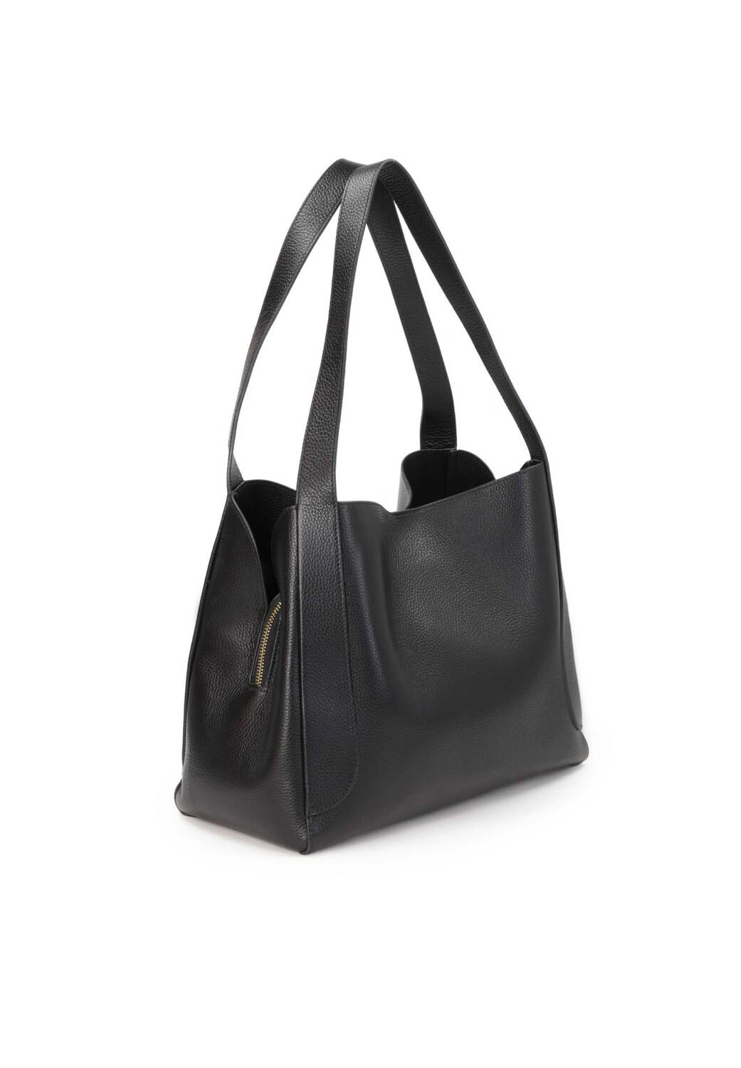 Классическая женская сумка из высококачественной зерненой кожи. На первый взгляд она похожа на большинство сумок такого типа. Но оказывается, что ее крой и внутренняя часть выглядят уникально и особенно. Внутреннее отделение закрывается на молнию, которая перекрывает боковые стороны сумки и красиво отделяет их друг от друга. Также обращают на себя внимание лямки, доходящие до дна сумки. Большой формат и универсальные цвета делают эту модель незаменимой частью вашего повседневного образа.