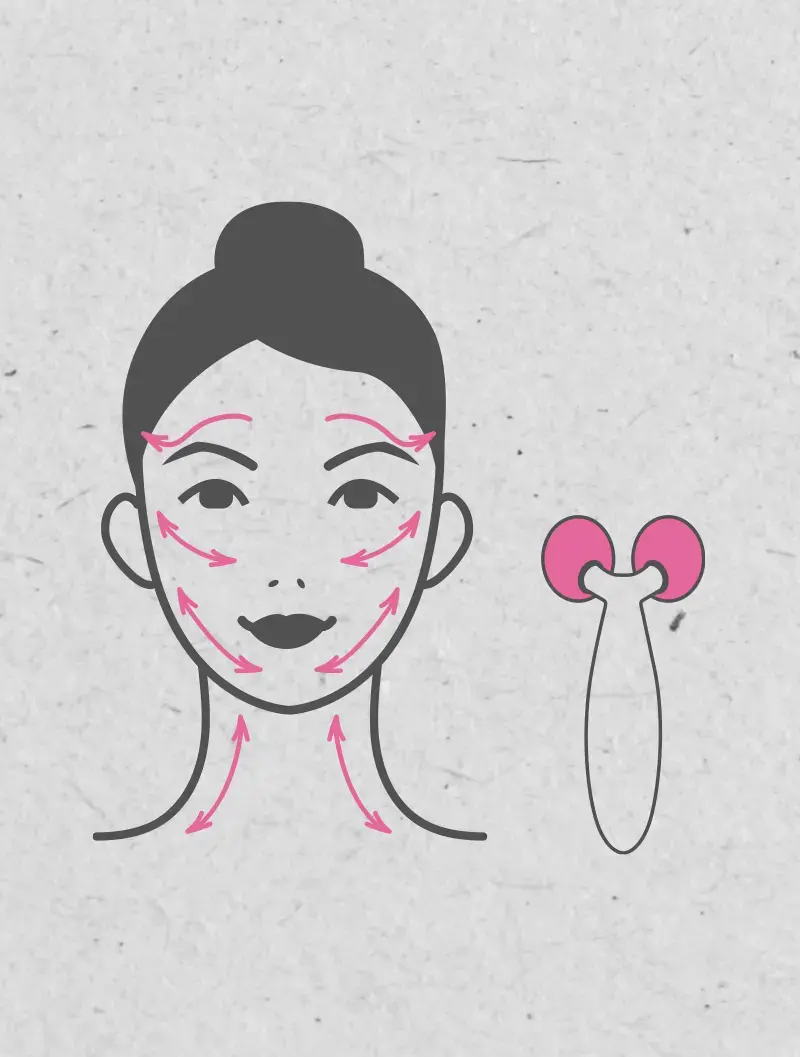 Способ применения: Тщательно очистите лицо, по желанию нанесите ухаживающее средство, а затем аккуратно помассируйте кожу от центра лица кнаружи и назад. Массируйте шею сверху вниз. Повторите каждое движение несколько раз. После использования тщательно промойте валик водой и высушите его.