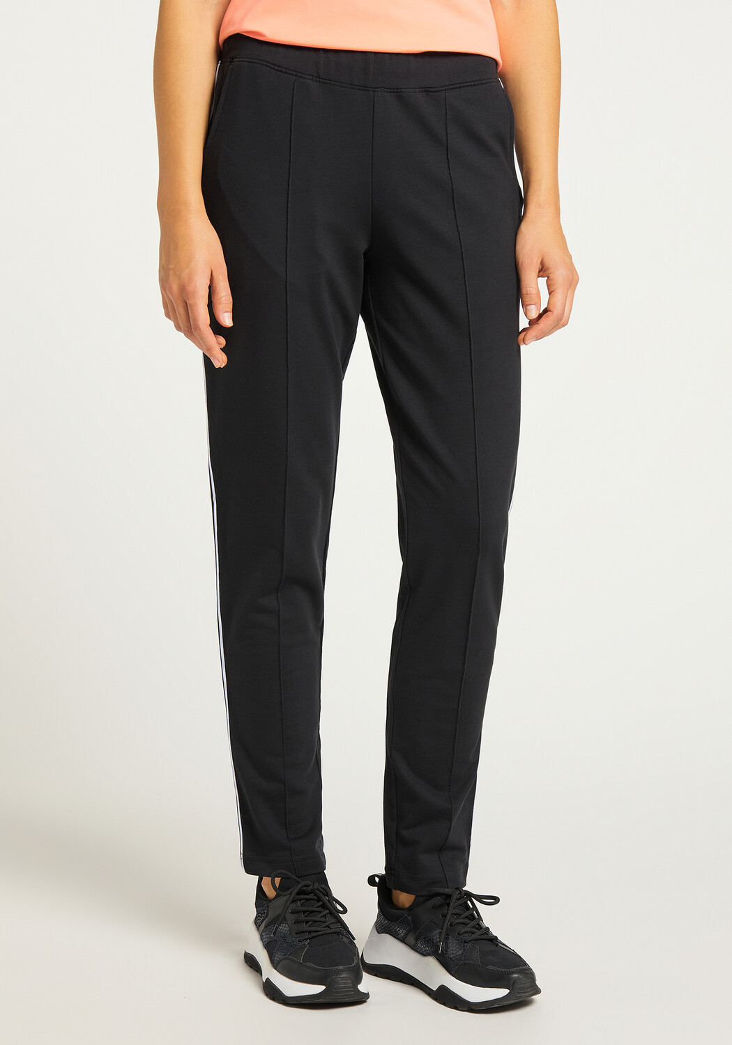 Спортивные брюки NATHALIE от Joy Sportswear. Повседневные спортивные штаны из эластичного хлопкового материала обеспечивают естественный комфорт. Контрастные боковые полосы придают спортивный оттенок и вдохновляют на творческие комбинации. Удобный крой брюк имеет регулируемый пояс и два практичных боковых кармана, обеспечивающие оптимальную поддержку во время тренировки.