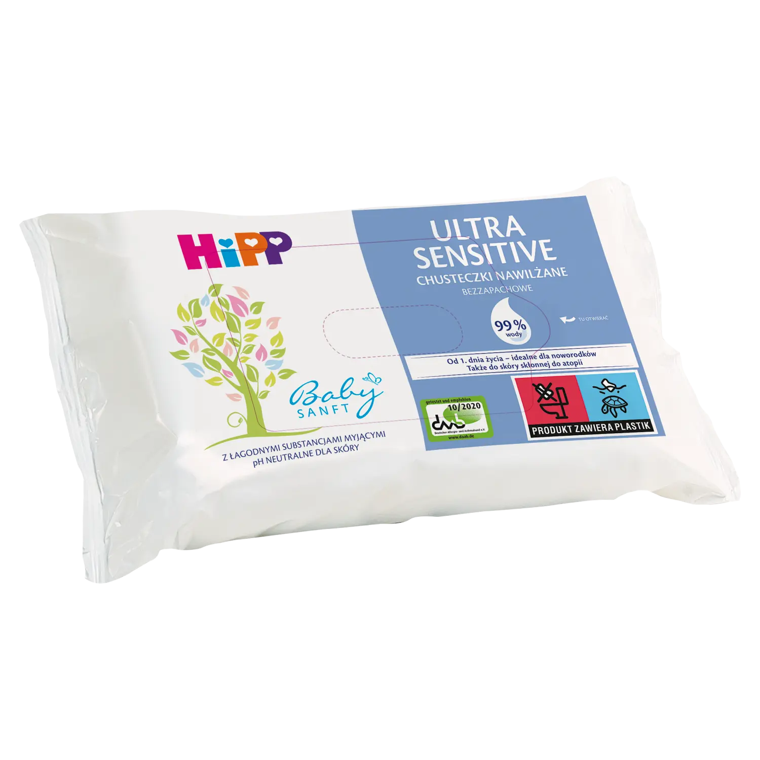 Влажные салфетки HiPP Babysanft 99% воды__ Изготовлены из нежных волокон с очень тонкой структурой. Благодаря исключительной мягкости и повышенной впитывающей способности салфетки очень тщательно очищают кожу ребенка - без необходимости прижимать их к коже. Они не оставляют волокон на коже._Чрезвычайно благоприятны для кожи: пропитаны нежной жидкостью, содержащей 99% воды - идеально подходят для очищения гиперчувствительной кожи, склонной к атопии._Безвредны для глаз - протестированы офтальмологами. С первого дня жизни._Салфетки можно легко вынимать из упаковки одну за другой.__Разработаны для минимизации риска аллергии._- без парафина_- без ароматизаторов_- без эфирного масла_- без спирта_- без мыла_- без красителей_- без феноксиэтанола_- без парабенов_- без силиконов_- без сырья животного происхождения.__ рН нейтральный для кожи. Отбелено без использования хлора._Полный уход за чувствительной кожей.__Для бережного очищения_- лицо_- руки_- низ