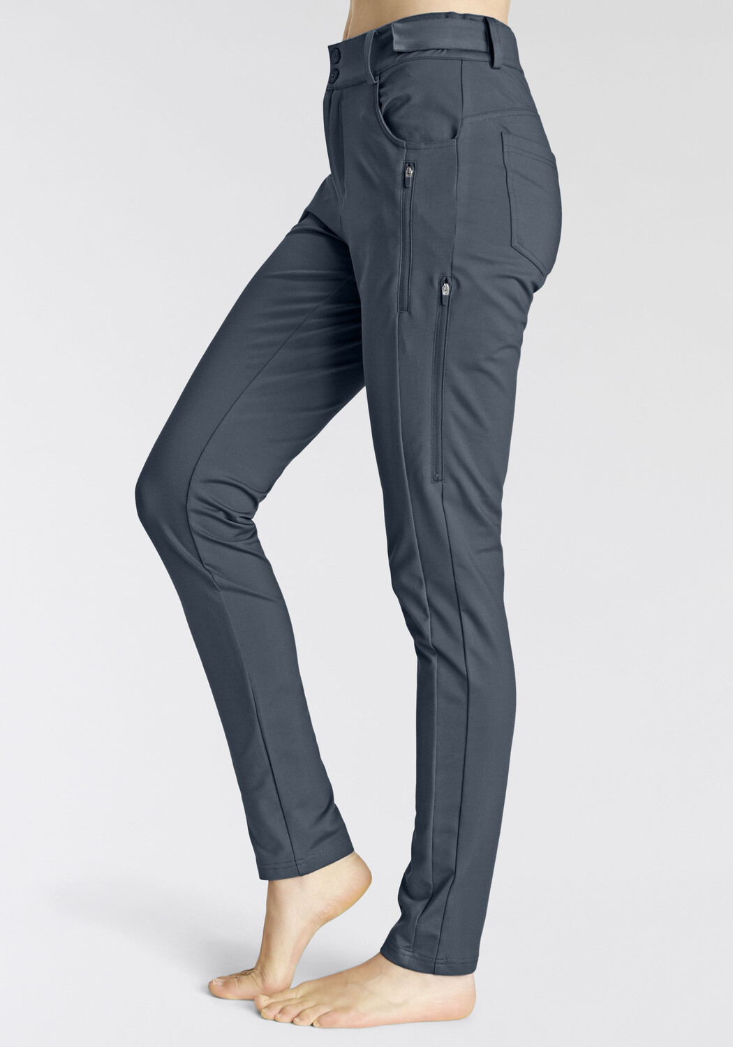 Удобные трекинговые брюки от Lascana Active приталенного кроя. Пояс можно легко регулировать. Различные карманы на молнии. Эластичный материал с сетчатыми вставками и мягкой начесом с внутренней стороны. Изготовлен из 87 % полиэстера, 13 % эластана.