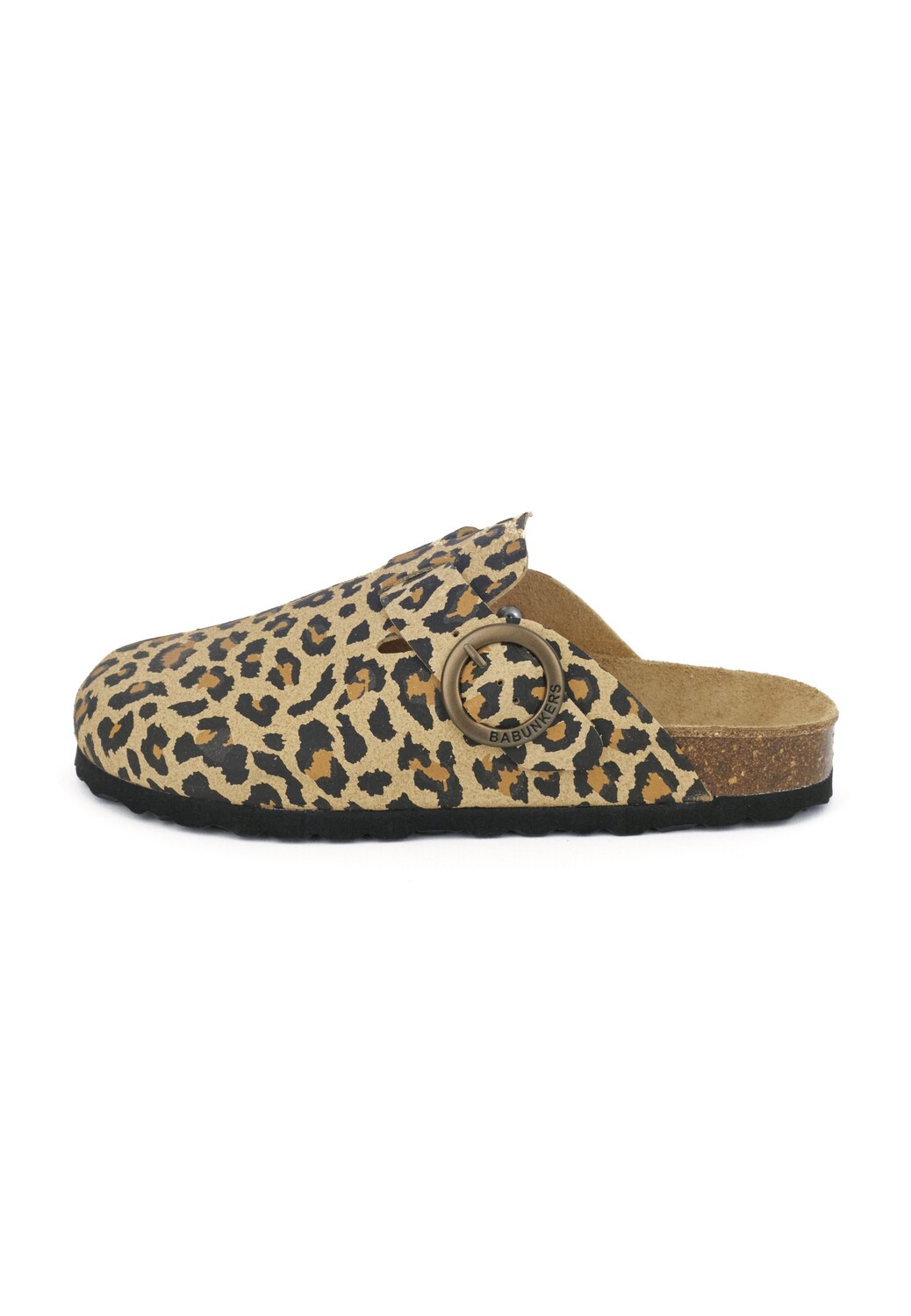 - Сабо из микрофибры с круглой пряжкой.