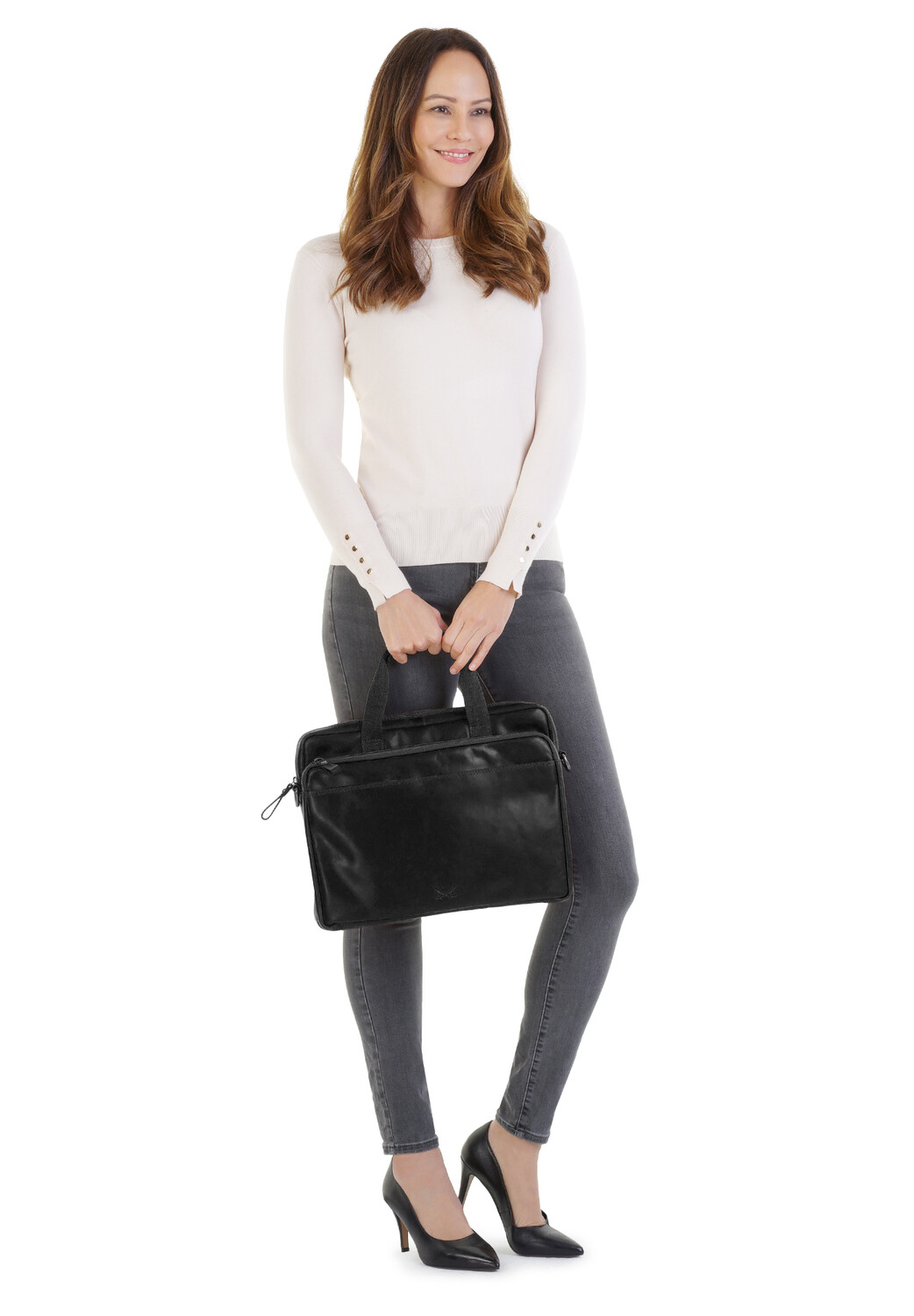 Для тех, кто предпочитает простоту, кожаный портфель из Занзибара просто идеален! Чтобы безопасно транспортировать оборудование и защитить его от незначительных ударов, в основном отделении имеется отделение для ноутбука с мягкой подкладкой. Передний карман с держателями для ручек и накладными карманами дает больше места для организации вещей. Держатель на тележке облегчает путешествие с портфелем. Чтобы сделать вашу повседневную работу максимально комфортной, вы также можете выбрать между короткими ручками для переноски и регулируемым ремнем через плечо.