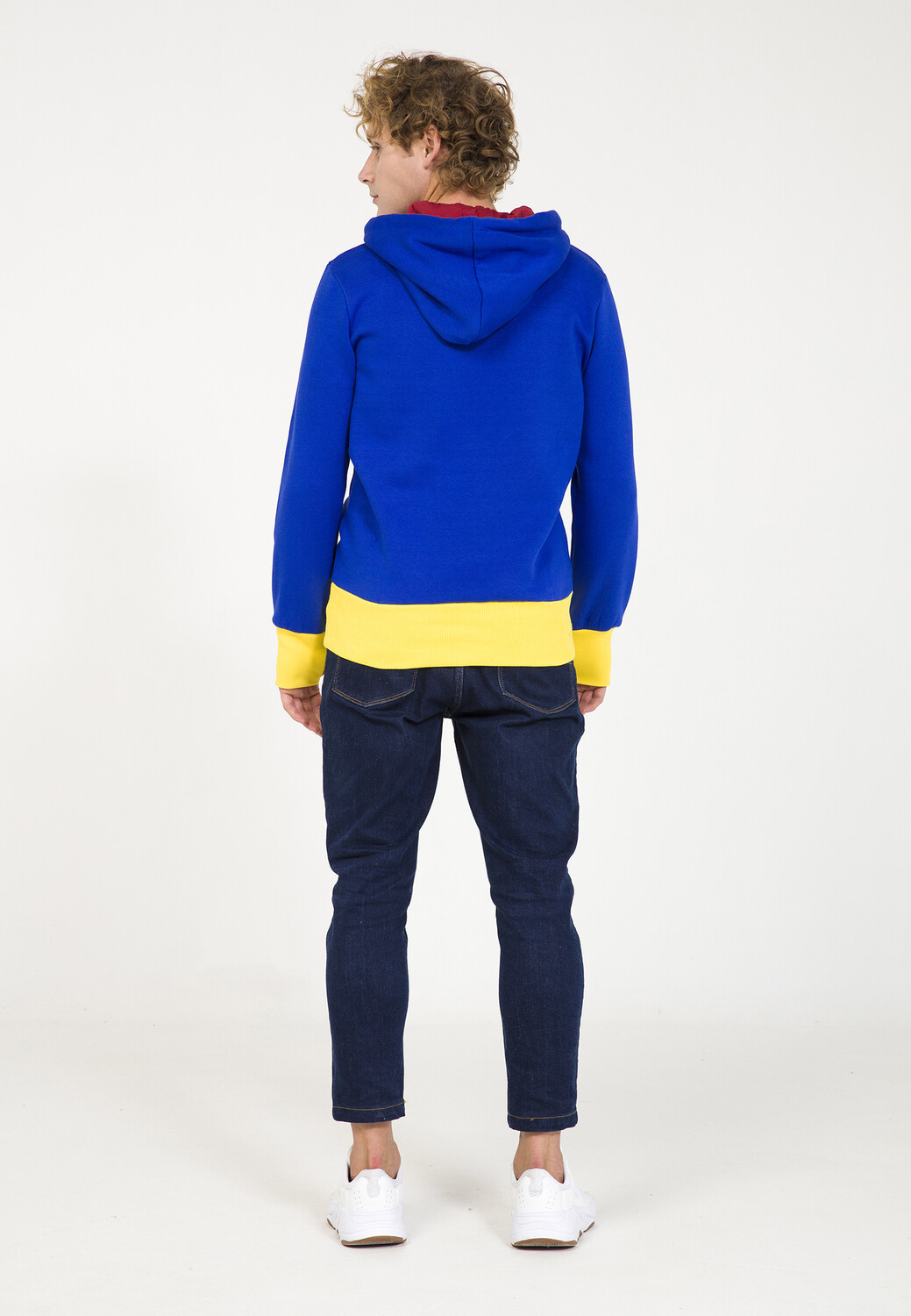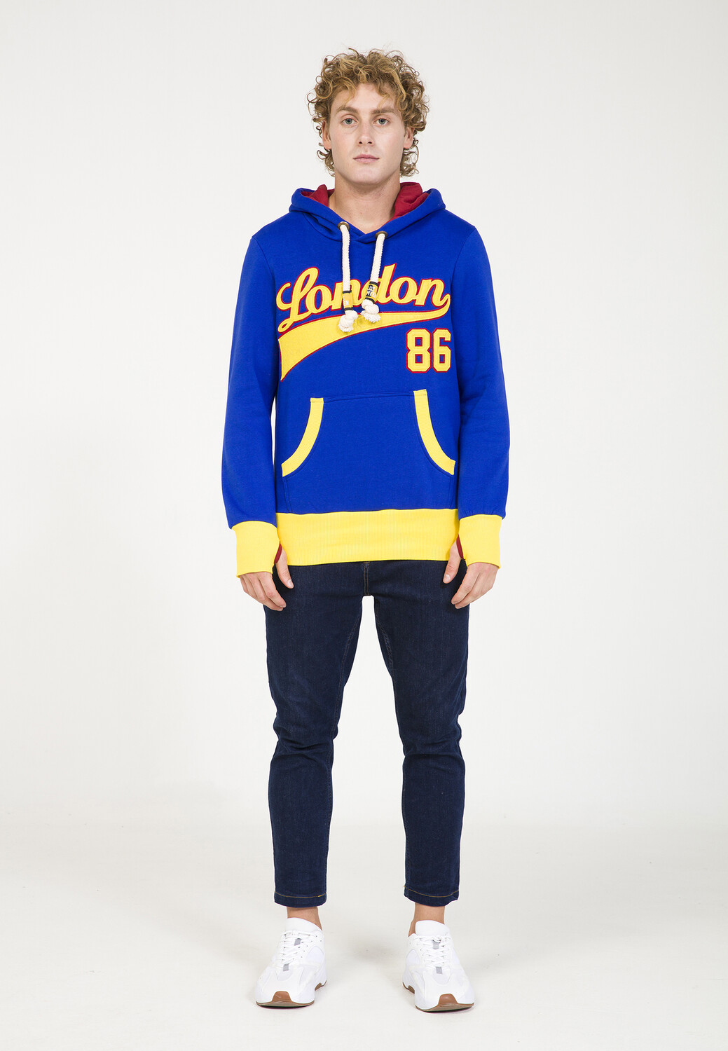 Яркое худи контрастных цветов сразу бросается в глаза. Манжеты и накладной карман-кенгуру, а также крупный принт спереди привлекают всеобщее внимание. Капюшон контрастного цвета внутри и широкие шнуры завершают стильный дизайн.