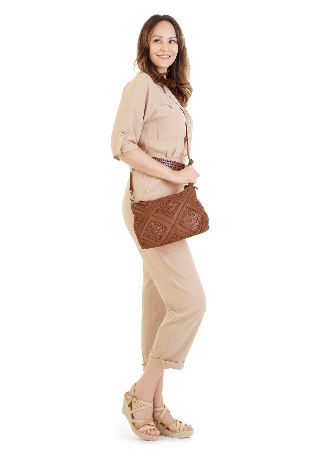 Samantha Look с итальянским колоритом представляет женскую кожаную сумку через плечо в модном стиле бохо-шик. Благодаря мягкому дублению вымытая кожа становится особенно эластичной и сохраняет свой винтажный шарм. Всегда носите с собой в сумочке кошелек, смартфон и небольшую бутылку с водой. Заднее отделение обеспечивает максимальную безопасность и идеально подходит для хранения важных удостоверений личности и документов рядом с телом. Поэтому ваша винтажная сумочка с игривым плетеным узором идеально подойдет для летних прогулок и ярких музыкальных мероприятий. В зависимости от случая вы можете выбрать один из 2 вариантов ношения: классический в виде сумочки или удобный в виде сумки через плечо.