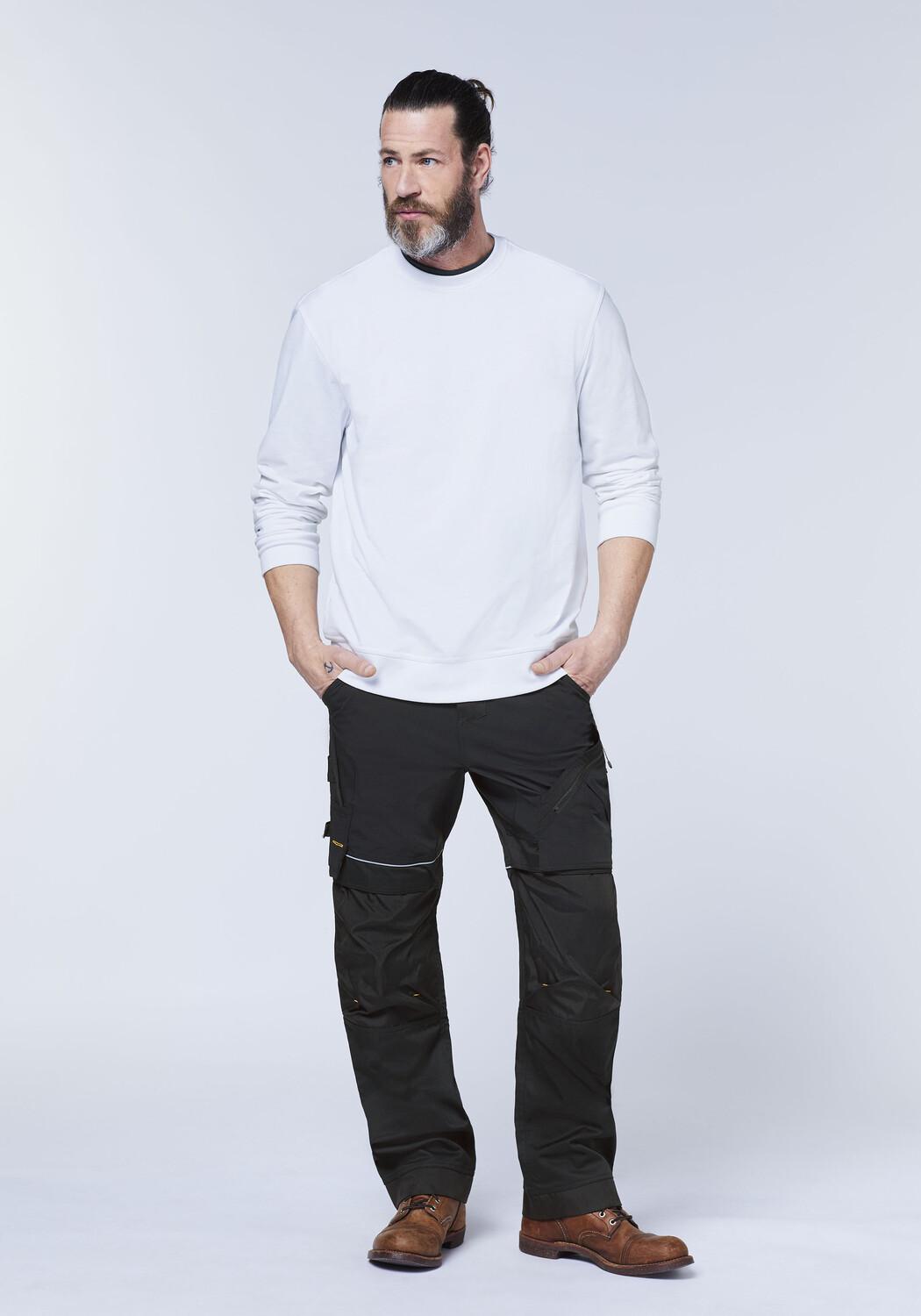 Настоящая классика! Будь то в офисе, на стройке или в свободное время — наша базовая толстовка с круглым вырезом Expand впечатляет своим особенно высоким уровнем комфорта. Ребристые манжеты стабильных размеров на рукавах и подоле являются практичными деталями, приятный мягкий хлопок и облегающий крой гарантируют хорошую и удобную посадку.