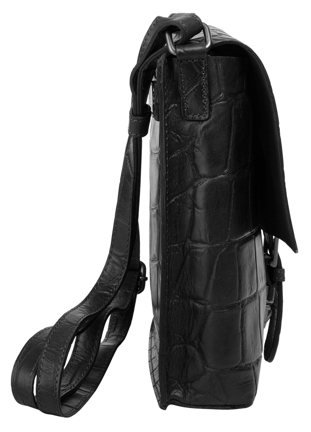 Кожаная сумка через плечо от bugatti имеет модный крокодиловый вид. Внутри небольшая сумка через плечо выглядит естественно; Основное отделение позволяет хранить кошелек, смартфон и календарь под защитой. Практичная молния и накладной карман идеально подходят для мелких предметов, таких как губная помада или жевательная резинка. Небольшой изюминкой является петелька – к ней можно прикрепить брелок для ключей и легко найти его снова. Носите новую сумку из кожи крокодила как на плече, так и в чемодане благодаря специальному держателю.