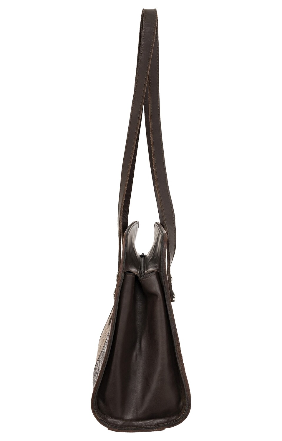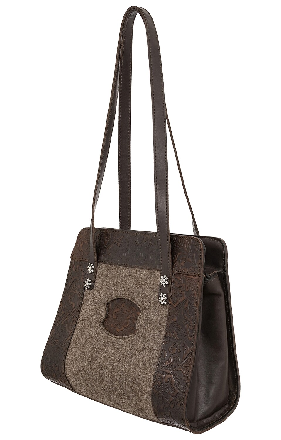 Ощутите вневременную элегантность и высочайший уровень мастерства с нашей изысканной сумкой 196-4400 теплого коричневого цвета, изготовленной из высококачественной тисненой кожи и лодена. Это уникальное сочетание материалов придает сумке не только роскошный вид, но и деревенский шарм.