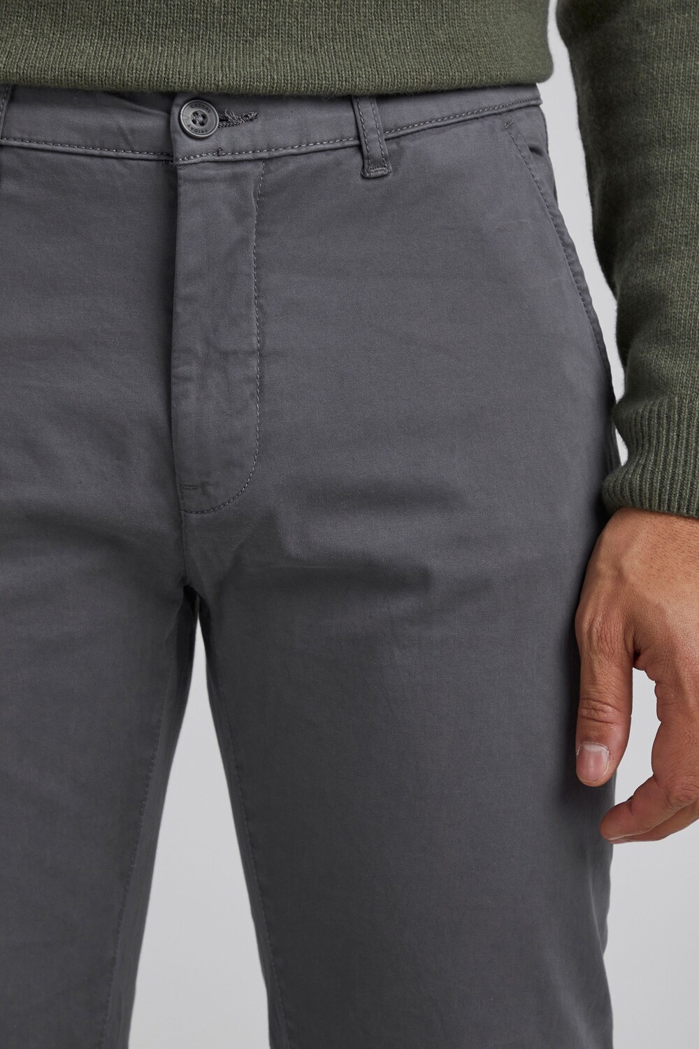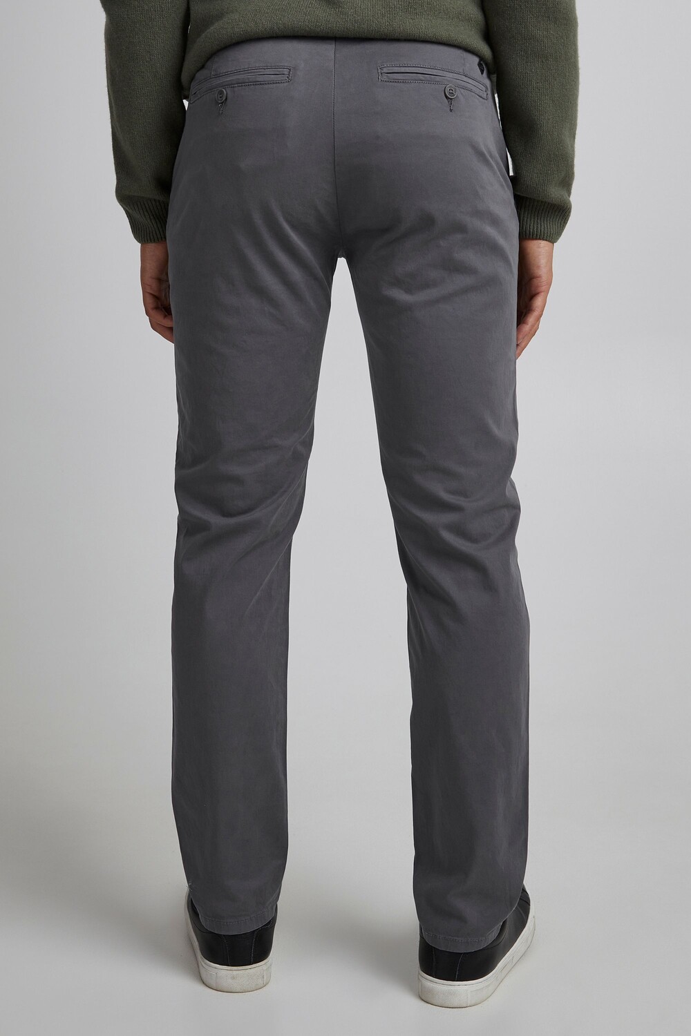 ДЕТАЛИ И ОСОБЕННОСТИ: Брюки-чиносы, приталенный крой, пояс с петлями для ремня, два боковых кармана спереди, два окантовочных кармана с пуговицами сзади, нашивка над задним карманом, очень приятный мягкий эластичный хлопковый материал.