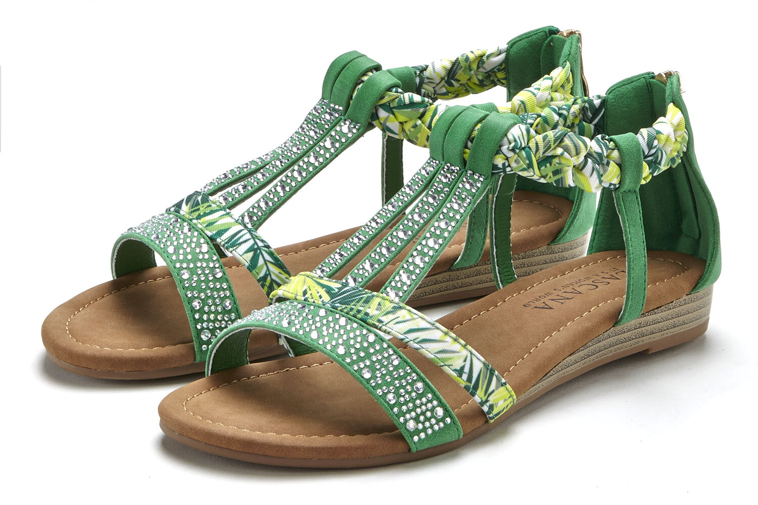 Сандалии с декором VEGAN от LASCANA. Верх из искусственной кожи и текстиля. Подкладка и стелька из искусственной кожи. Синтетическая подошва.