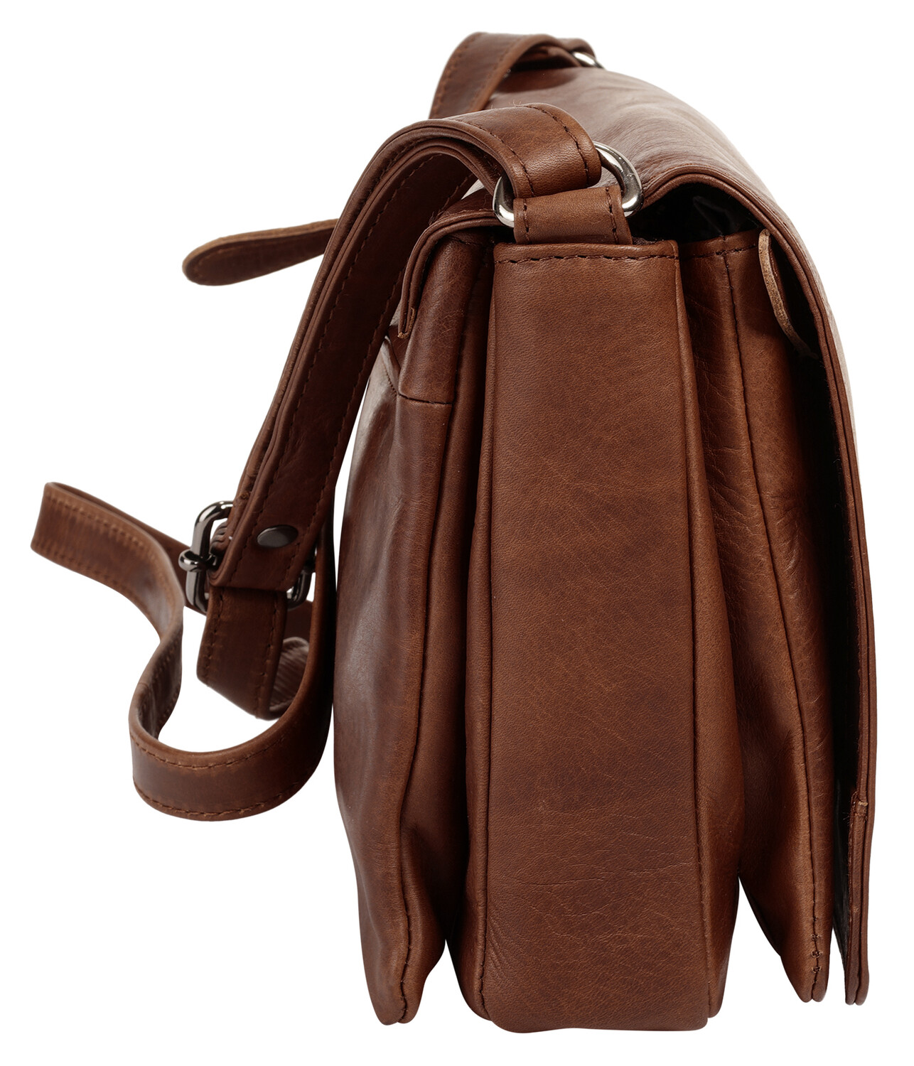 Позвольте себе вдохновиться очаровательной вневременной кожаной сумкой через плечо от Cluty! Винтажный вид кожи, клапан на магнитной застежке, удобный формат: дизайн шикарного аксессуара напоминает сумку-мессенджер. Внутри сумка состоит из одного основного и двух дополнительных отделений, каждое из которых отделено друг от друга запирающимся внутренним карманом. Различные варианты вставки можно найти внутри и снаружи. Четкое разделение и широкий выбор отделений делают сумку через плечо идеальной для повседневных дел и встреч. Плечевой ремень можно плавно регулировать для удобства ношения.