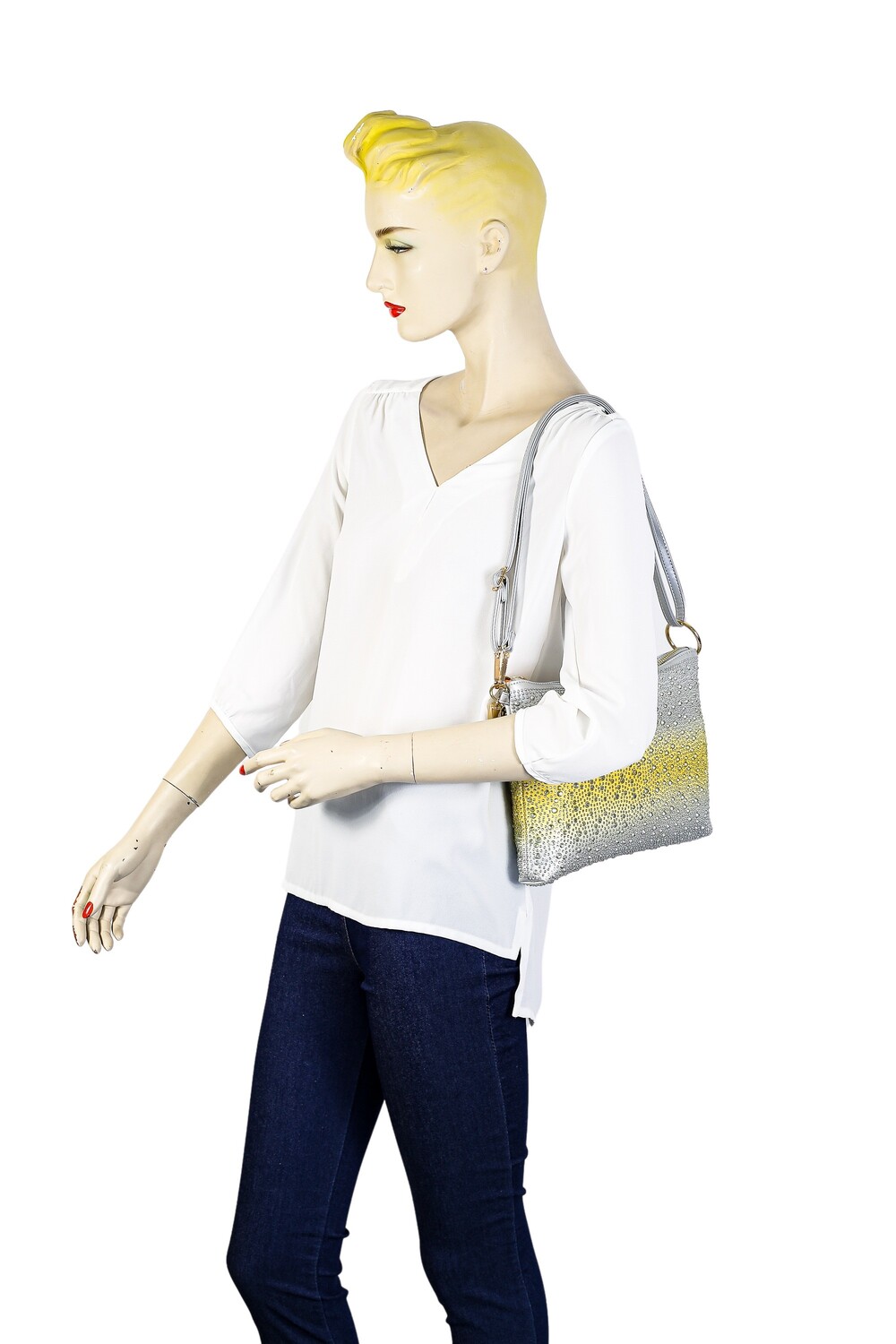 Настоящая приманка для глаз, сделанная из тысяч маленьких сверкающих камушков. Изготовлено индивидуально. Мягкий материал со стразами. Очень хорошее качество. Три варианта переноски (см. буклет в сумке). Регулируемый ремешок. Идеально подходит для любого вечернего мероприятия и для привлечения всеобщего внимания.