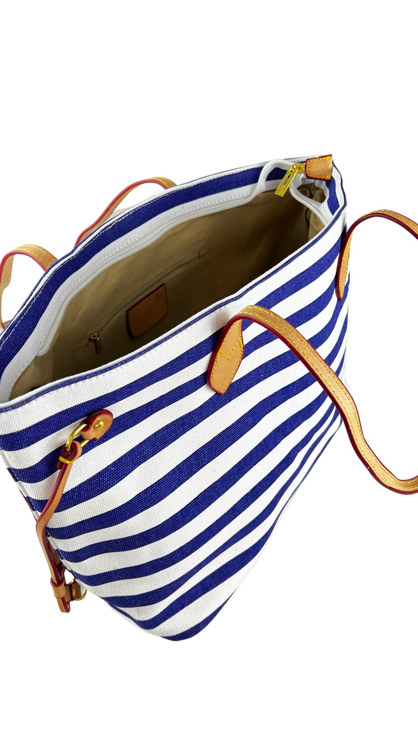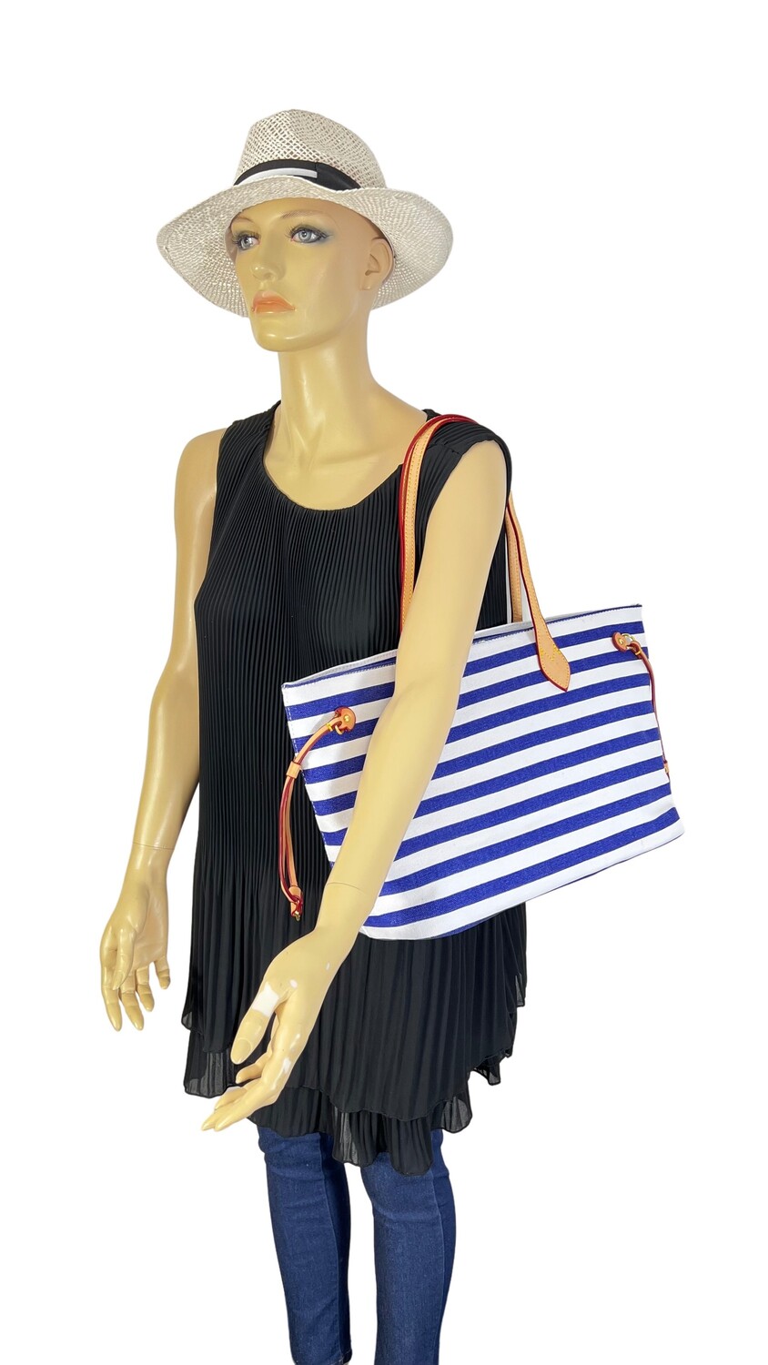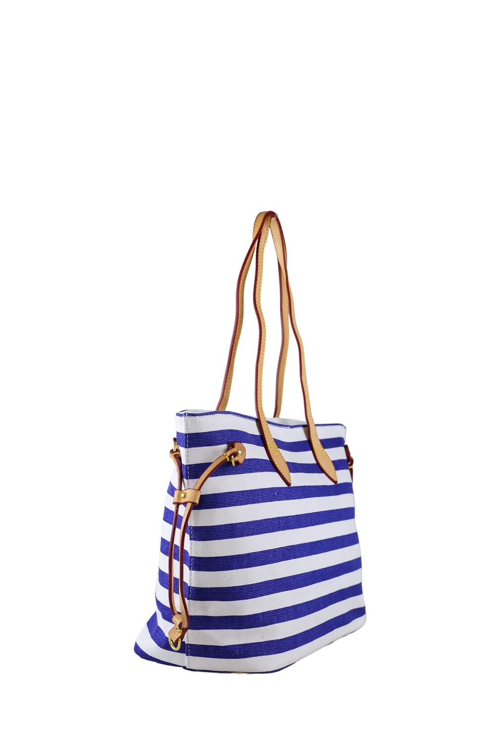 Фирменная сумка Collezione Alessandro в морском стиле. С ручками из натуральной кожи и хлопчатобумажной тканью. Внутри карман на молнии.