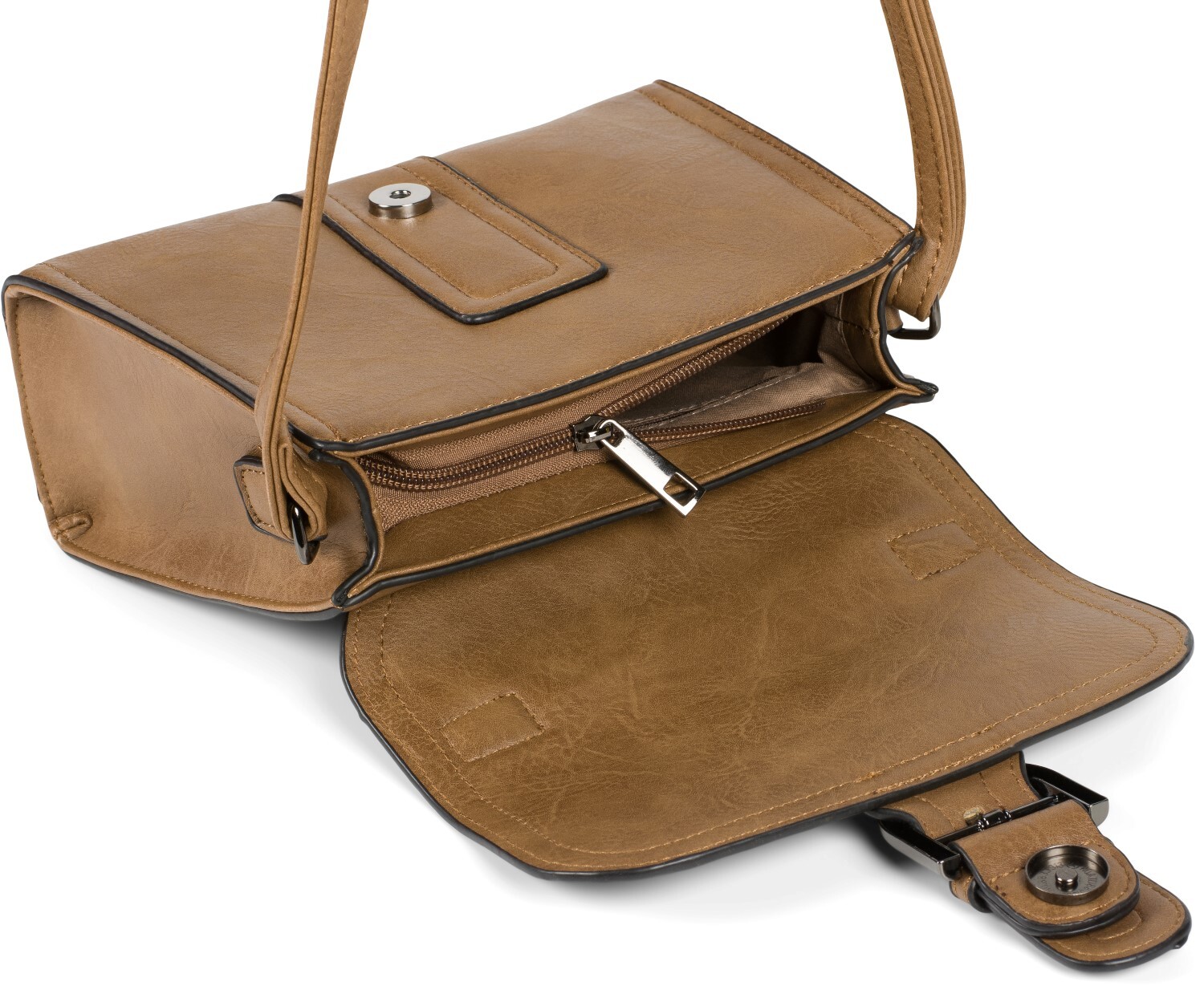 styleBREAKER Небольшая однотонная сумка на плечо из тисненой искусственной кожи с декоративной пряжкой, контрастными декоративными швами и регулируемым ремнем.