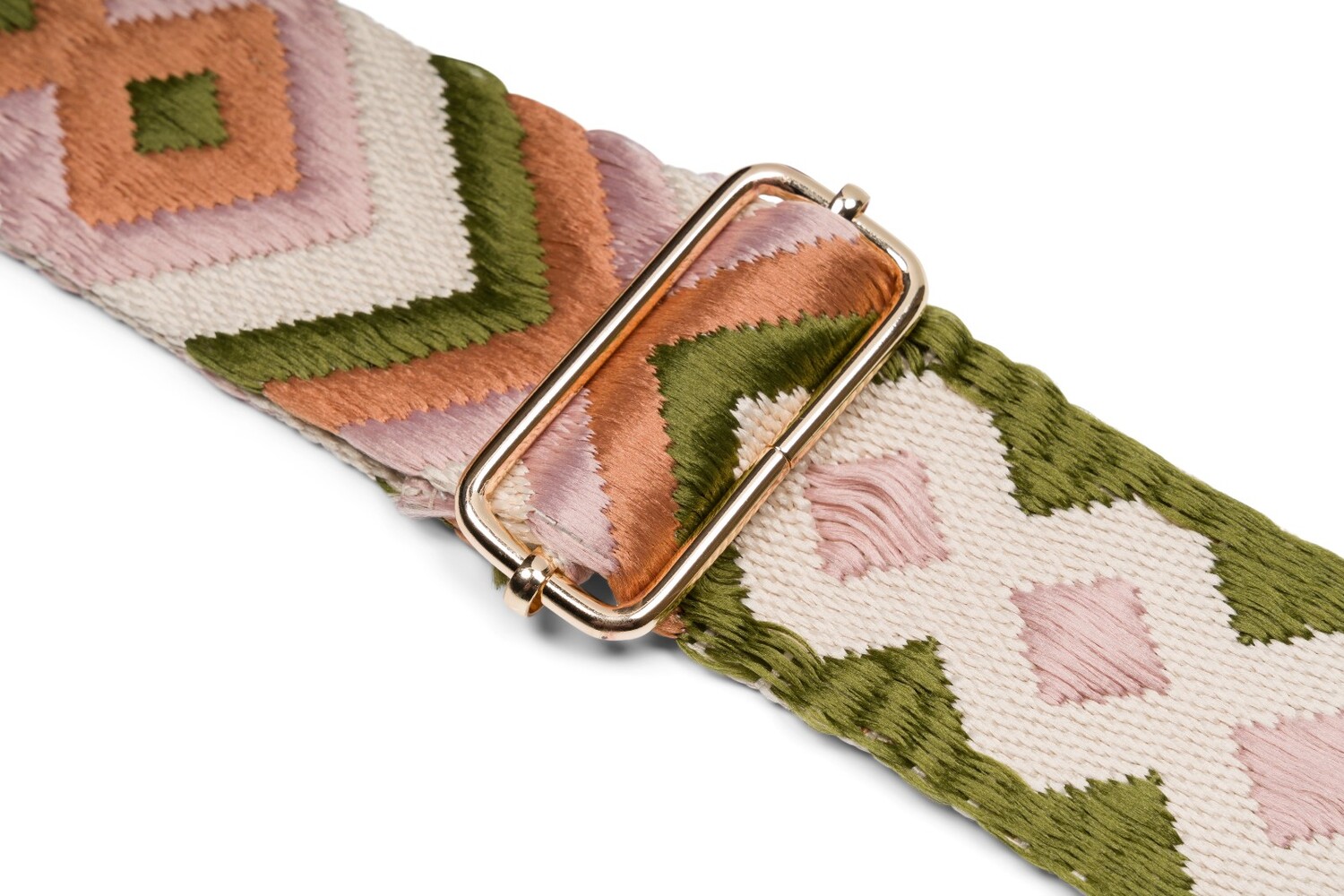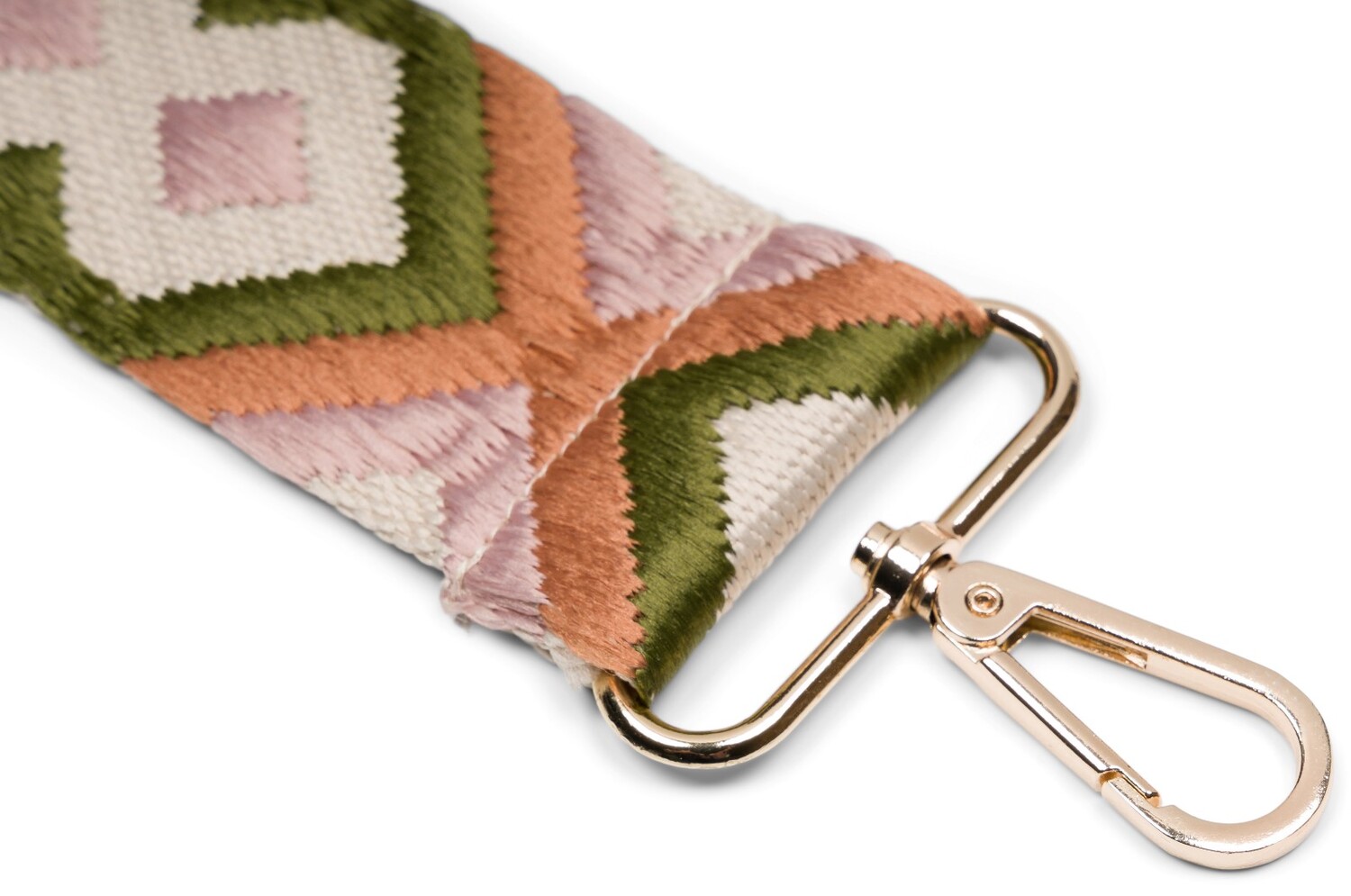 Вы устали от скучного монохромного ремня вашей сумки или хотите придать ей новый вид? У вас есть силиконовый чехол для мобильного телефона с петельками и ремешком для мобильного телефона, который вы хотели бы заменить? С помощью нашего модного сменного плечевого ремня с разноцветным этническим узором вы можете сделать это одним щелчком мыши и придать своей любимой сумочке совершенно новый стиль. Плечевой ремень можно просто закрепить в имеющихся проушинах и отрегулировать до нужной длины, и новая сумка готова. Ремешок сумки имеет ширину 5 см, поэтому его удобно носить благодаря оптимальному распределению веса на плече.