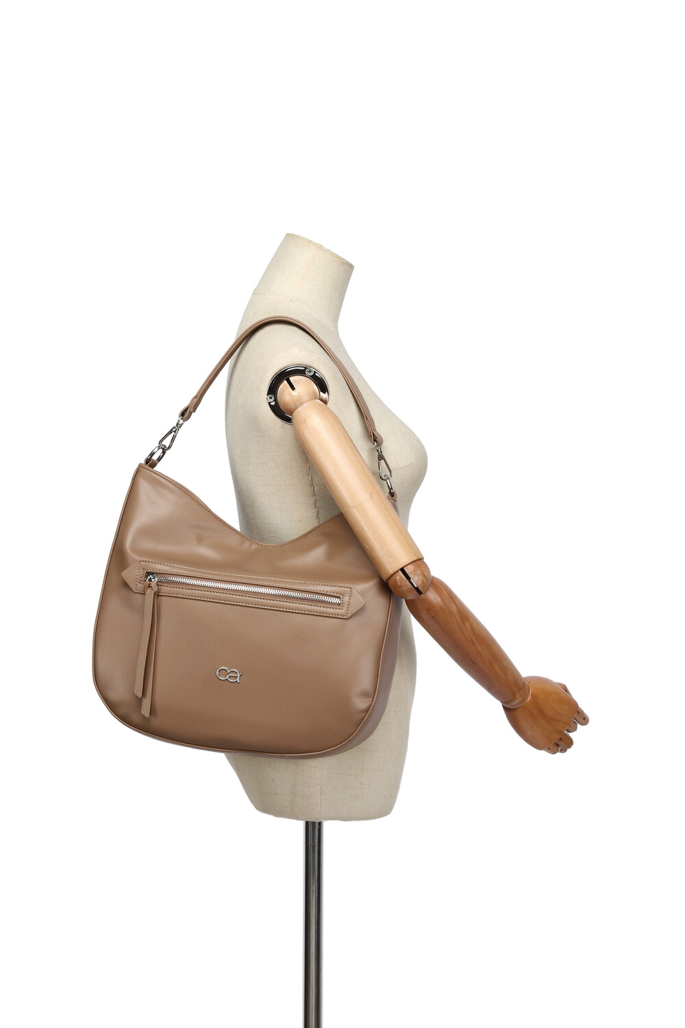 Дизайнерская сумка через плечо из мягкого и приятного на ощупь материала. Красивый, мягкий на ощупь материал, не содержащий животных, превосходного качества. Прекрасное исполнение интерьера. С внешней застежкой-молнией.
