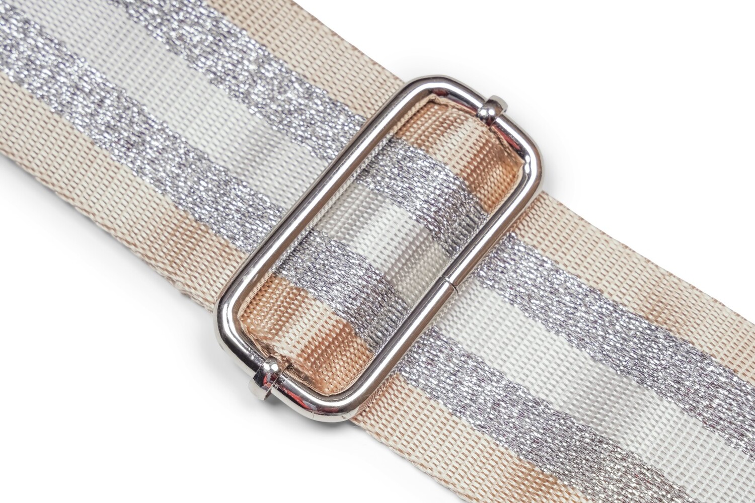 Вы устали от скучного простого ремня вашей сумки или хотите придать ей новый вид? У вас есть силиконовый чехол для мобильного телефона с петельками и ремешком для мобильного телефона, который вы хотели бы заменить? С нашим модным сменным плечевым ремнем с металлизированным узором в полоску вы можете сделать это в два клика и придать своей любимой сумочке или мобильному телефону совершенно новый стиль. Плечевой ремень можно легко закрепить в имеющихся проушинах с помощью двух карабинов и отрегулировать до желаемой длины. Ремень сумки или ремешок для мобильного телефона имеет приятную ширину 5 см и поэтому удобен в ношении.