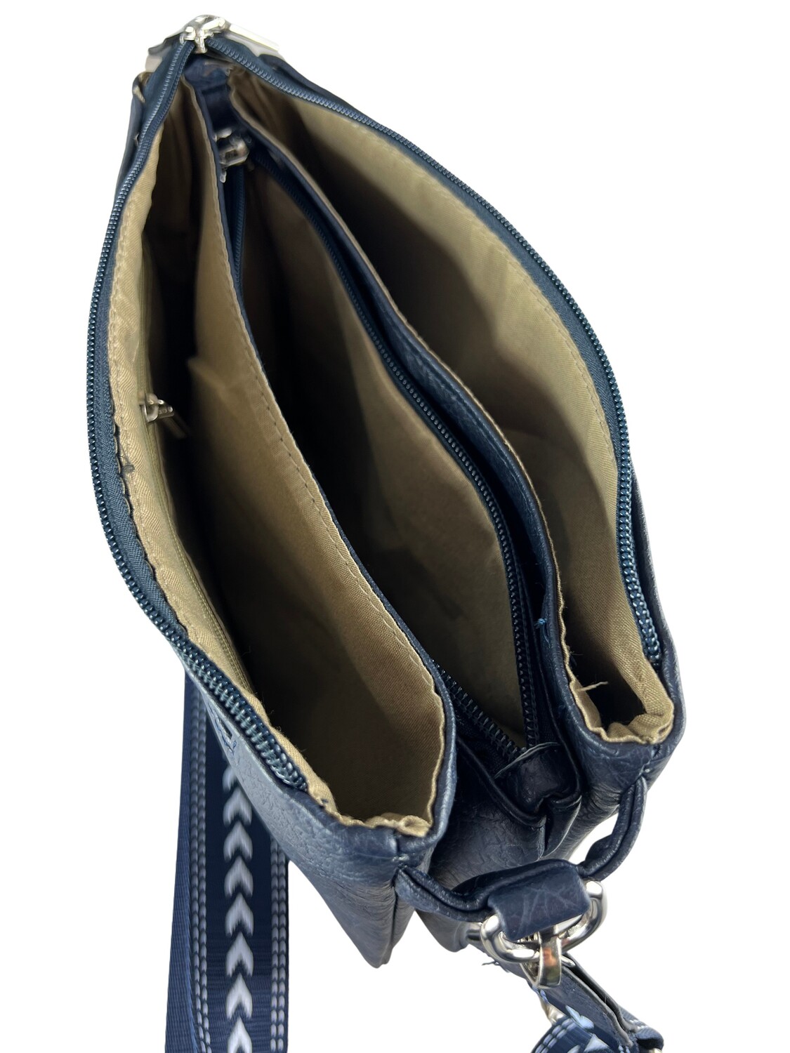 Идеальная сумка на каждый день с тремя отдельными отделениями, все на молнии. Модный ремень для переноски из текстильного материала. Регулируется как короткая или длинная сумка через плечо. Три отделения