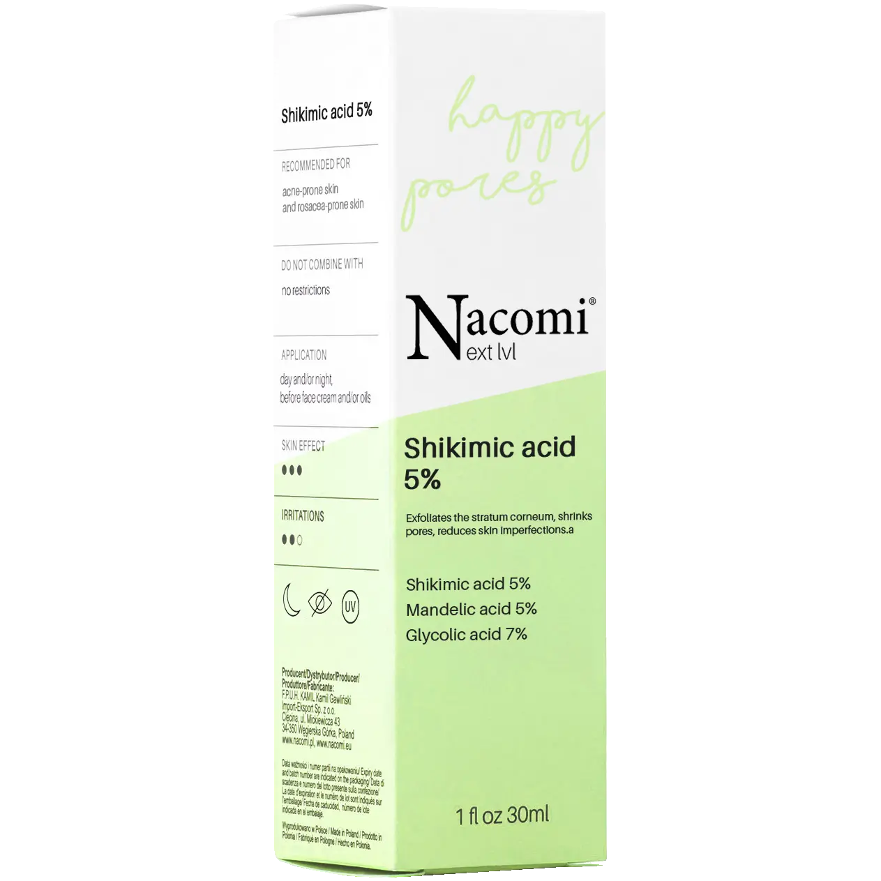 Нормализирующая сыворотка для проблемной кожи с черными точками и расширенными порами. Композиция из шикимовой, гликолевой и миндальной кислот отшелушивает ороговевший слой, уменьшает имеющиеся несовершенства и предотвращает их повторное появление. Он помогает очистить поры, сводит к минимуму обесцвечивание постакне и стимулирует восстановление кожи. В сочетании с EVERMAT регулирует выделение кожного сала, уменьшает морщины, очищает и сужает расширенные поры, придавая коже матовый вид. Способ применения: вечером нанести небольшое количество на очищенную кожу лица, шеи и декольте, избегая области вокруг глаз, рта и носа. Слегка помассируйте и оставьте на 10 минут, затем смойте теплой водой. Начните использовать, оставив его на 2-3 минуты. Используйте перед нанесением крема/масла. Используйте 2-3 раза в неделю во время вечернего ухода. Во время использования может ощущаться легкое жжение. Избегайте контакта с глазами. Берегите от детей. Продукт только для наружного применения. Во время лечения необходимо в течение дня использовать кремы с фильтром SPF 50. Перед первым применением необходимо провести тест на аллергию. Прекратите использование, если возникают побочные реакции. При использовании препарата необходимо проконсультироваться с дерматологом или косметологом.