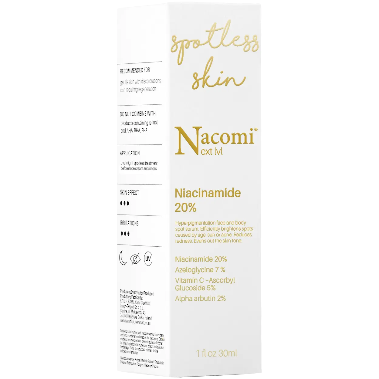 Точечная сыворотка от гиперпигментации с интенсивным действием. Концентрированная доза активных ингредиентов улучшает внешний вид и питает кожу. Состав, обогащенный 20% концентрацией ниацинамида, оказывает выраженное осветляющее и противовоспалительное действие, одновременно разглаживая структуру эпидермиса. В сочетании с азелоглицином, альфа-арбутином и витамином С эффективно уменьшает возрастные изменения, постакне и солнечные обесцвечивания. Кроме того, сыворотка уменьшает покраснения и выравнивает тон кожи. Способ применения: нанести точечно или на пигментированные участки кожи лица и тела. Мягко помассируйте и оставьте до полного впитывания. Используйте перед нанесением крема/масла. Избегайте контакта с глазами. Продукт для наружного применения. Не используйте на поврежденной/раздраженной коже. Берегите от детей. Прекратите использование, если возникают побочные реакции. Не используйте с другими препаратами, содержащими ретинол и кислоты AHA, BHA и PHA. Во время лечения необходимо использовать кремы с SPF 50 в течение дня.