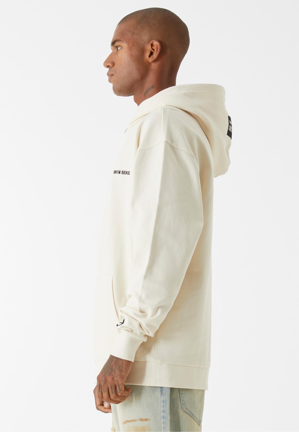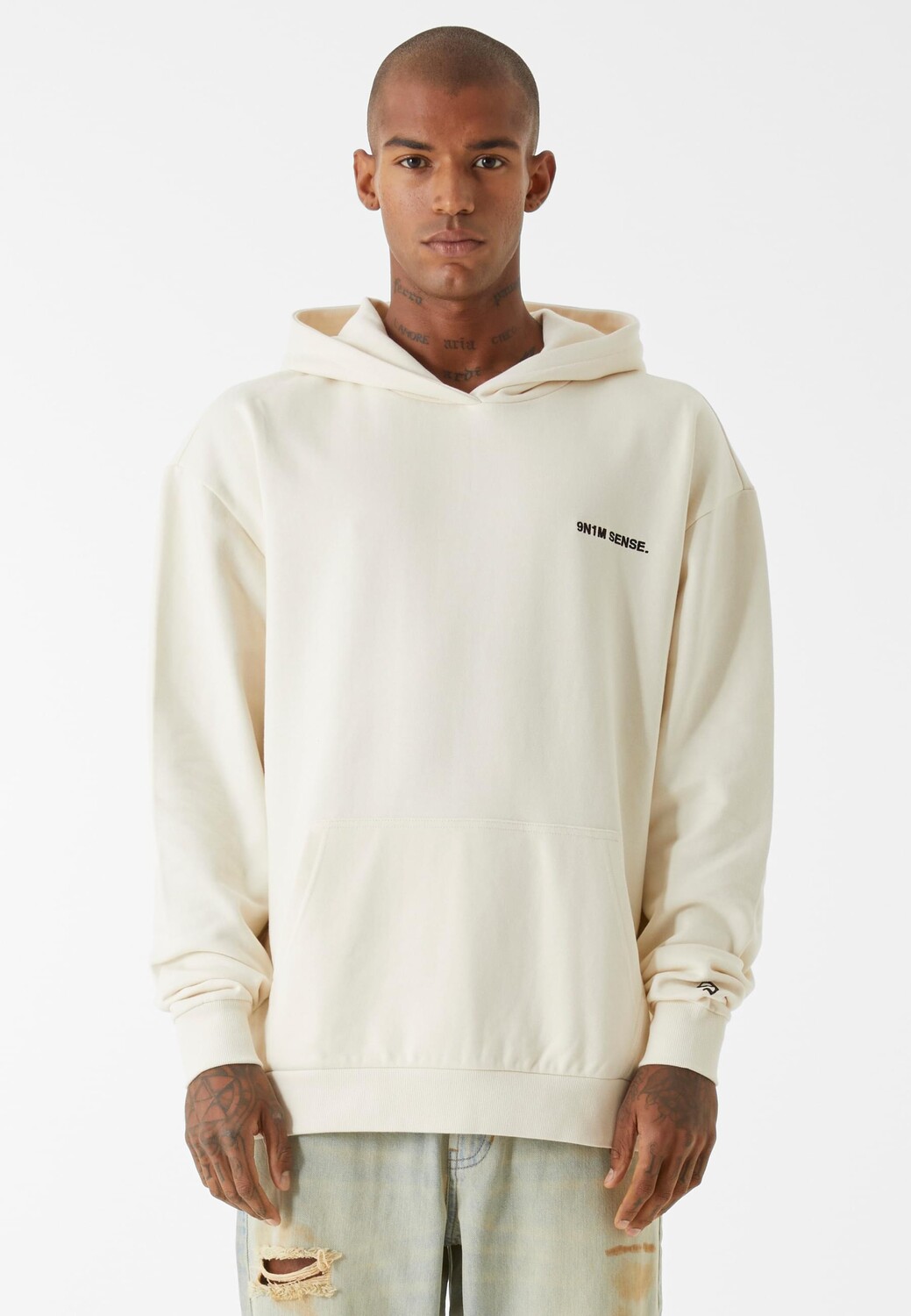 Толстовка свободного кроя с персиковой ручкой, эффектом стирки, вышитым логотипом «9N1M SENSE.» на груди, нашивкой «9N1M SENSE.» сзади на капюшоне и вышивкой «9» на левом рукаве. Пуловер обычного кроя с персиковой отделкой на ощупь. Качество хлопка 350 GSM. , очень мягкая внутри