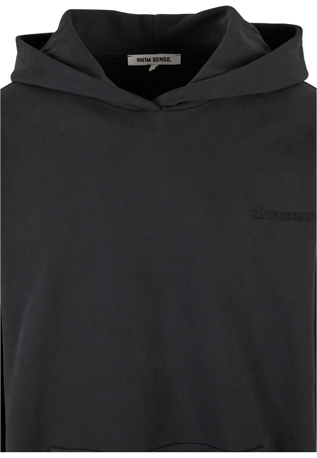 Толстовка свободного кроя с персиковой ручкой, эффектом стирки, вышитым логотипом «9N1M SENSE.» на груди, нашивкой «9N1M SENSE.» сзади на капюшоне и вышивкой «9» на левом рукаве. Пуловер обычного кроя с персиковой отделкой на ощупь. Качество хлопка 350 GSM. , очень мягкая внутри